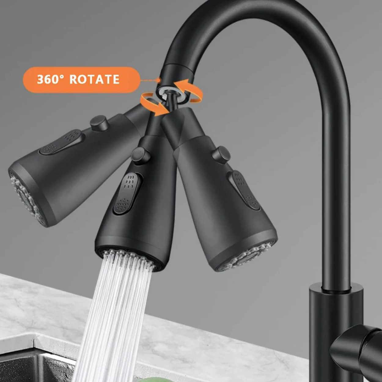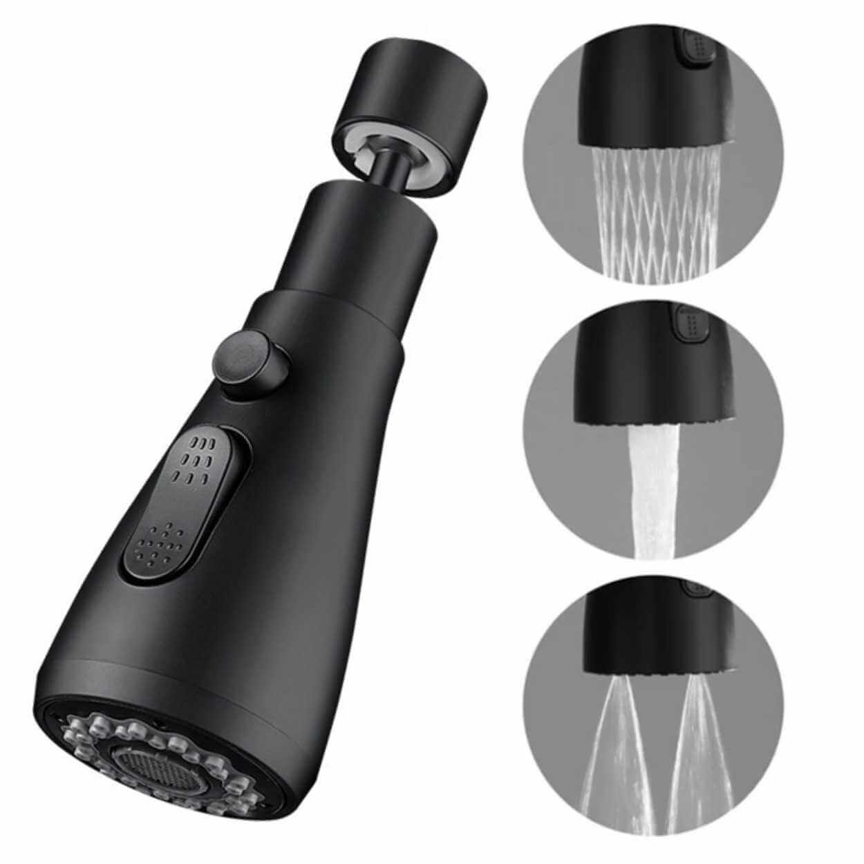 Kranmunstycke som gör köksblandaren mer flexibel vid disk och sköljning. Tre lägen ger rätt vattenbild för uppgiften: stråle, dusch eller kombinerat flöde. Dubbla 360°-leder gör det enklare att rikta vattnet mot hela diskhon och komma åt svåråtkomliga ytor. Luftinblandning ger ett mjukare flöde som minskar stänk och kan bidra till lägre vattenförbrukning. Monteras snabbt och passar FM22 (utvändig gänga) samt FM24 (invändig gänga) med medföljande adapter.