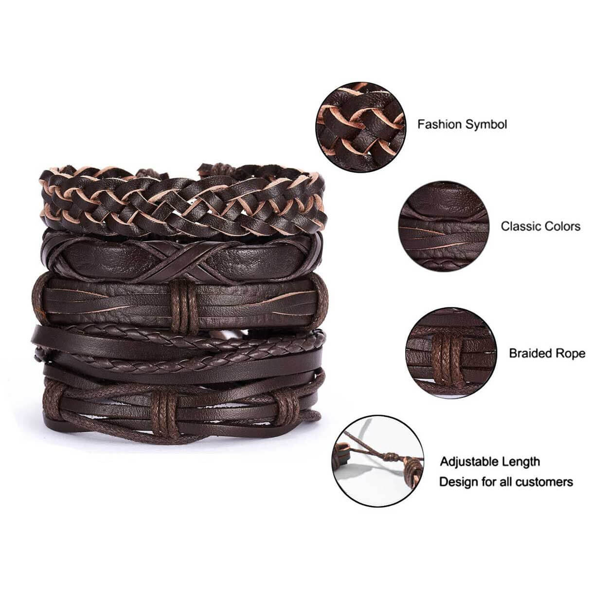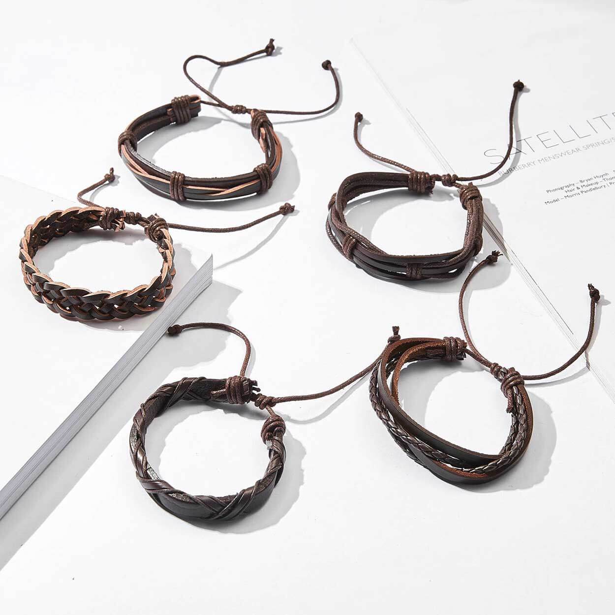 5 armband i set Handgjort läder Justerbar längd Kan bäras ihop