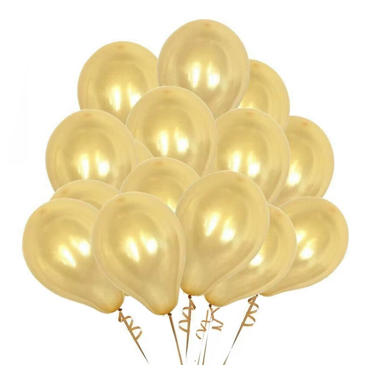 Latexballonger med metallicfinish som ger en tydlig dekorationskänsla till fest och firande. Storleken blir cirka 30 cm när ballongerna är uppblåsta, vilket gör dem lämpliga för ballongbuketter, bordsdekorationer och enklare ballongbågar. Latexmaterialet är flexibelt och lätt att knyta, och ballongerna fungerar bra att kombinera med andra dekorationer för ett mer sammanhållet tema. Passar till födelsedagskalas, bröllop, nyår och andra tillfällen där dekoren ska kännas lite mer uppklädd.