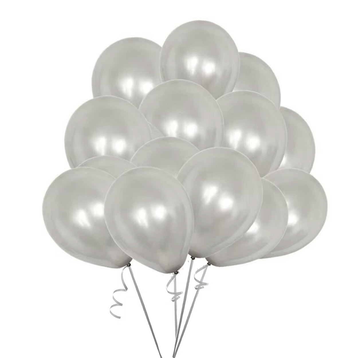 Latexballonger med metallisk finish som ger en tydlig glans i festdekorationer. Storleken är 12 tum när ballongerna är uppblåsta, vilket gör dem lämpliga för ballongbuketter, bågar och enklare rumsdekoration. Ballongerna kan fyllas med luft eller helium beroende på upplägg och önskad effekt. Latexmaterialet är smidigt att knyta och fungerar bra både som enskilda ballonger och i kombination med andra dekorationer vid kalas, bröllop och nyår.