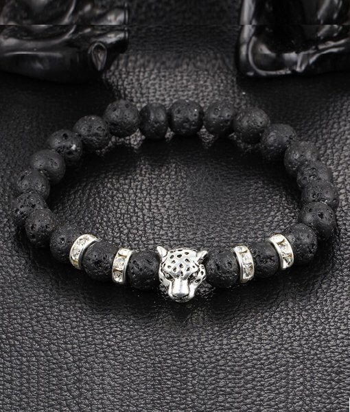 Lavastenarmband / herrarmband – stretch passform – lavasten, silverfärgade detaljer