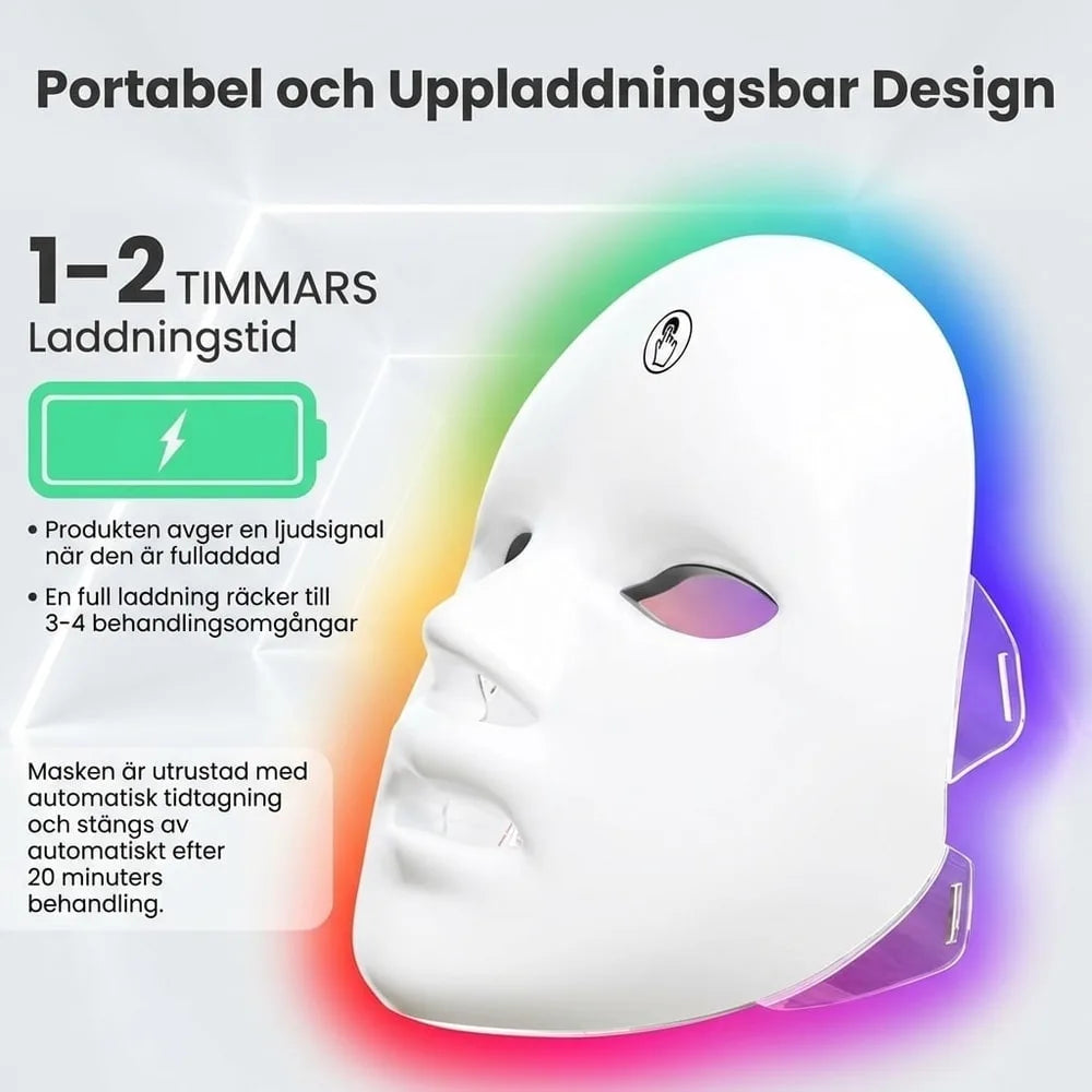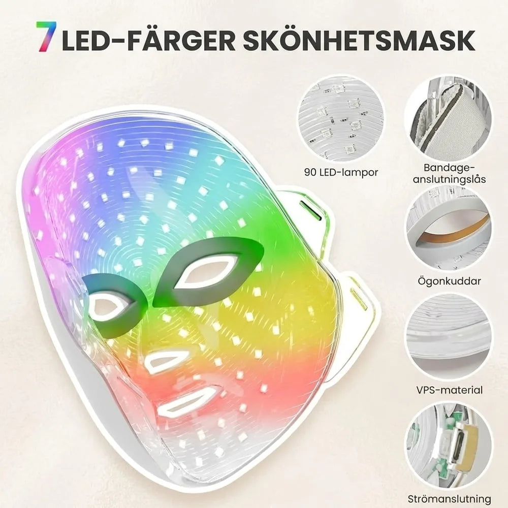 LED ansiktsmask / ljusterapi – hudvård hemma – 7 färger, 3 intensitetsnivåer