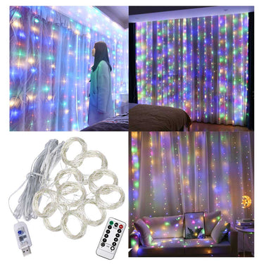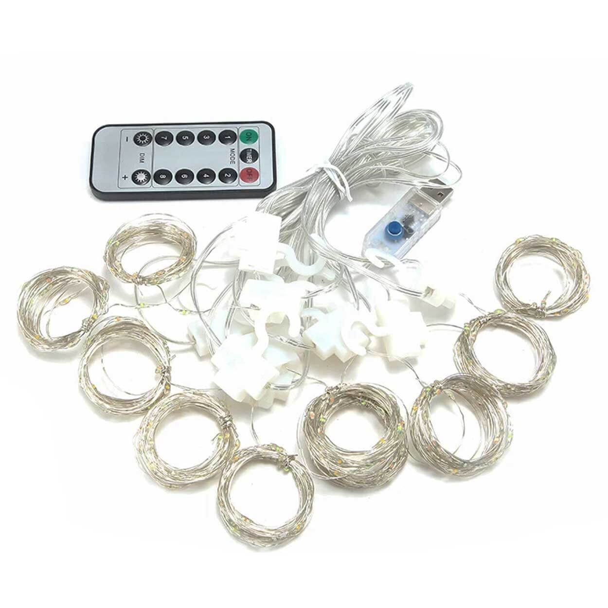 Led gardin / ljusslinga – fönsterbelysning – fjärrkontroll, USB, 3 x 3 m