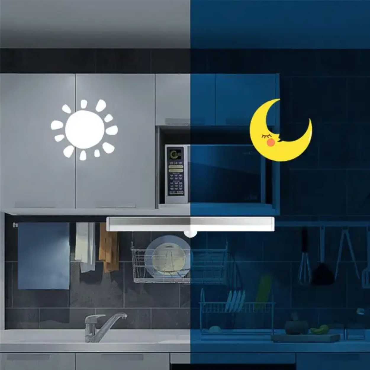 Trådlös LED-lampa med rörelsesensor som ger praktisk belysning i skåp, lådor, garderob, kök eller badrum. Lampan tänds automatiskt när den känner av rörelse och aktiveras bara i mörker, vilket minskar onödig energiförbrukning. Ljusstyrkan kan justeras för att passa utrymmet. Magnetfästet med självhäftande bas gör monteringen snabb utan verktyg, och lampan kan enkelt tas loss för laddning. Uppladdning sker via USB och laddkabel samt magnetfäste ingår.