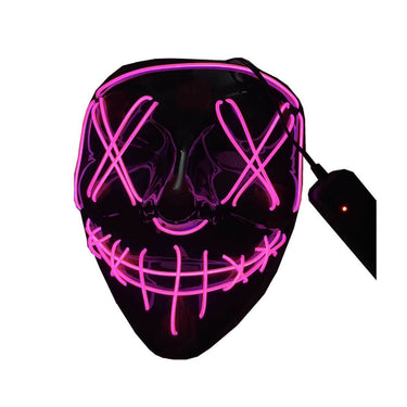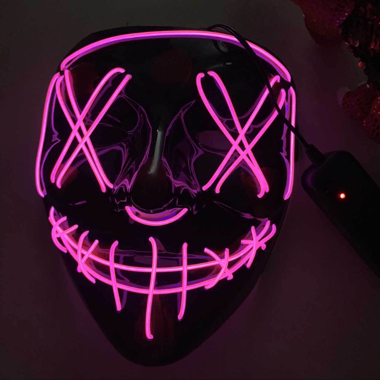 LED-ansiktsmask inspirerad av The Purge, framtagen för maskerad och halloween. Inbyggd LED-belysning ger tydlig effekt i mörker och kan ställas i fyra ljuslägen, inklusive fast sken och blink. Masken drivs av två AA-batterier, vilket gör den enkel att använda utan laddning. Passar bra när du vill skapa starka bilder eller video i dämpad belysning och samtidigt få en tydlig, skrämmande look som syns på avstånd.