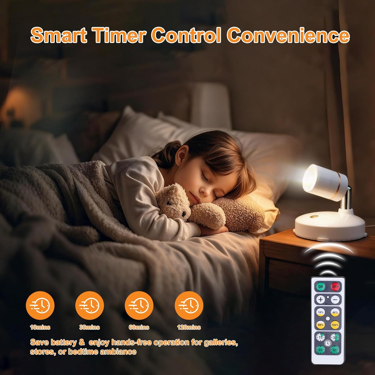 LED-pucklampa för skåp, hyllor och andra små utrymmen där du vill ha extra ljus utan kabeldragning. Lampan är batteridriven och styrs via fjärrkontroll med räckvidd upp till 8 meter, eller med knapp direkt på lampan. Välj mellan fyra ljusstyrkor på 10, 40, 80 eller 100 procent och använd timer för automatisk avstängning efter 10, 30, 60 eller 120 minuter. Neutralvitt ljus på 4000 K och CRI 80–89 ger ett jämnt sken och tydlig färgåtergivning. Konstruktion i ABS-plast för tålig vardagsanvändning.