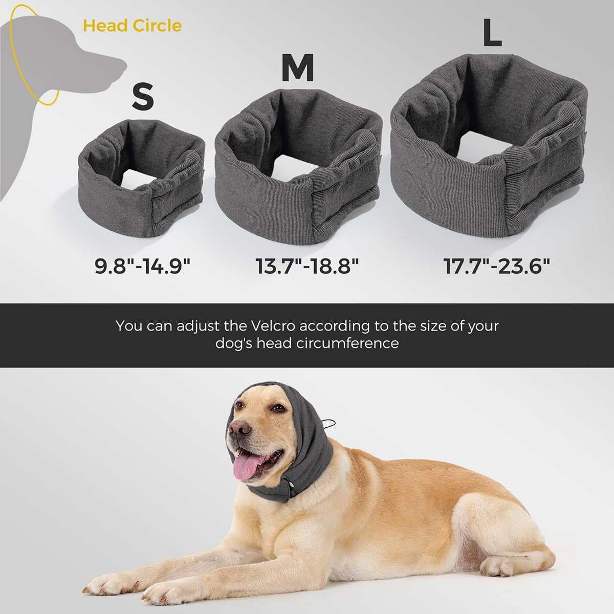 Dämpar höga ljud Skyddar hundens öron Justerbar kardborre För pälsvård Storlek S M L