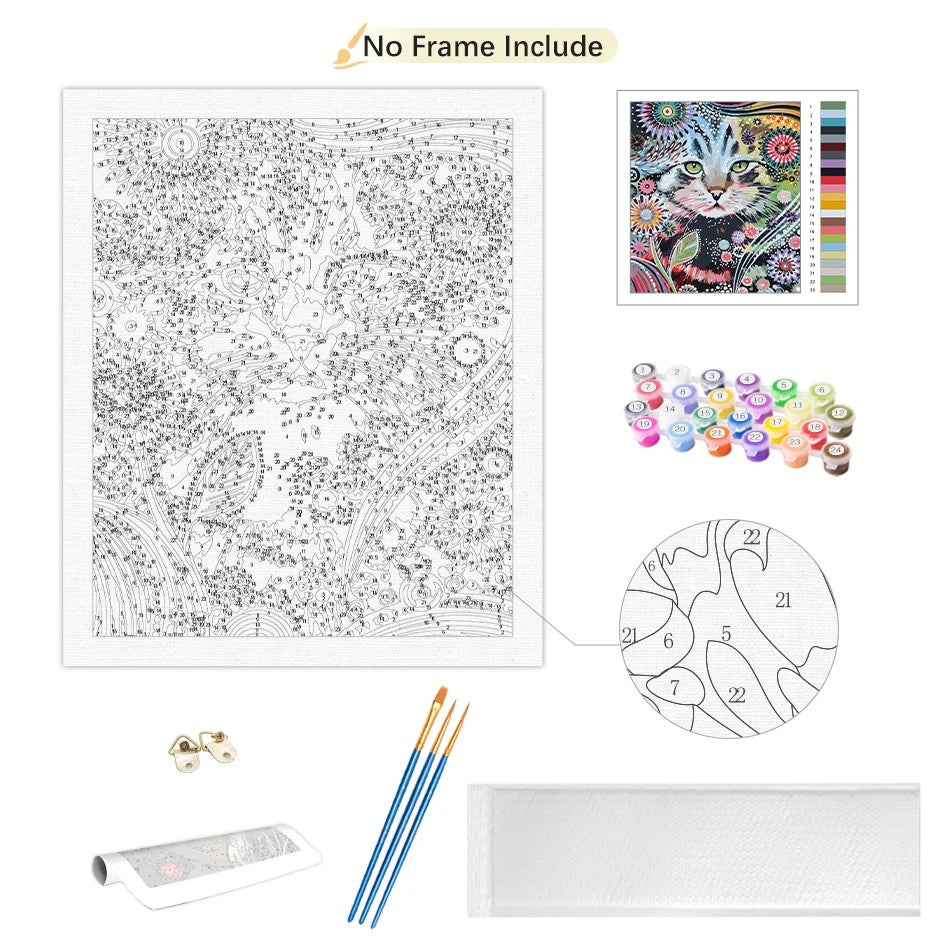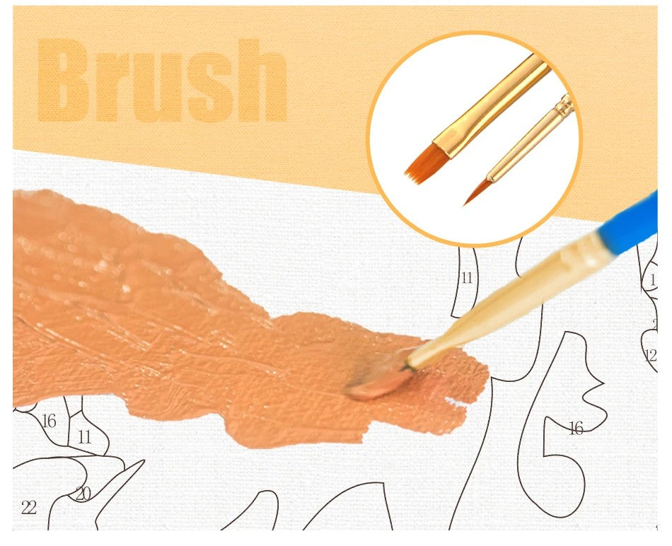 Måla efter nummer / paint by numbers – porträttmålning – tryckt duk, färg, penslar