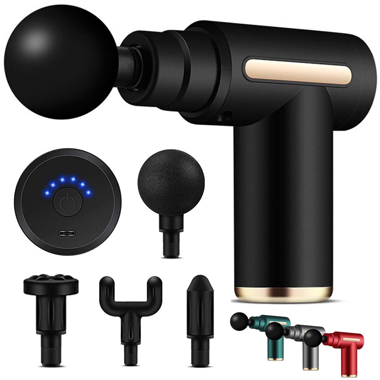 Massagepistol / massage gun – muskelåterhämtning – 6 nivåer, 4 huvuden, 1800 mAh, 30 W