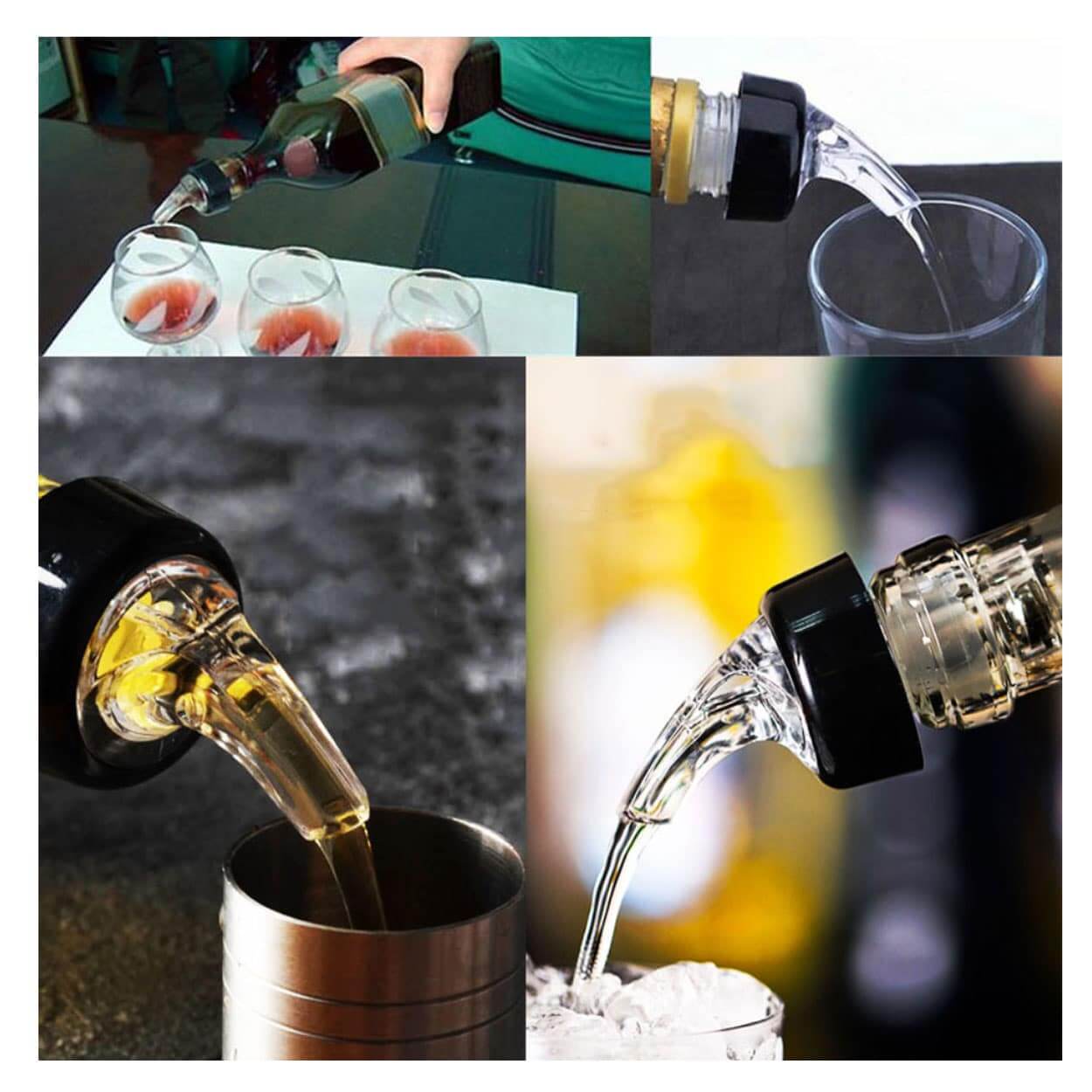 Måttande droppkork som automatiskt doserar 20 ml vid varje upphällning. Vänd flaskan och få en jämn mängd utan att behöva mäta upp i jigger, vilket gör det enklare att hålla samma styrka i shottar och drinkar. Hällpipen ger ett kontrollerat flöde och hjälper till att minska spill runt flaskhalsen. Konstruktionen i plast och gummi är gjord för att sitta stadigt och täta mot flaskan så att vätskan leds genom munsstycket.