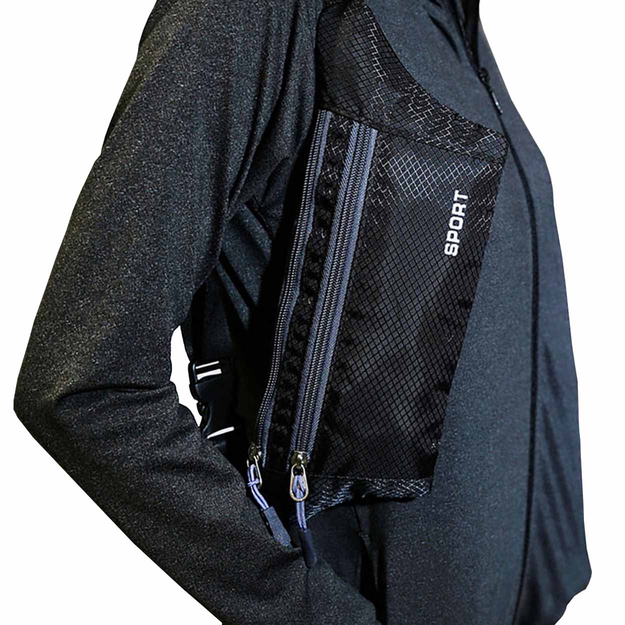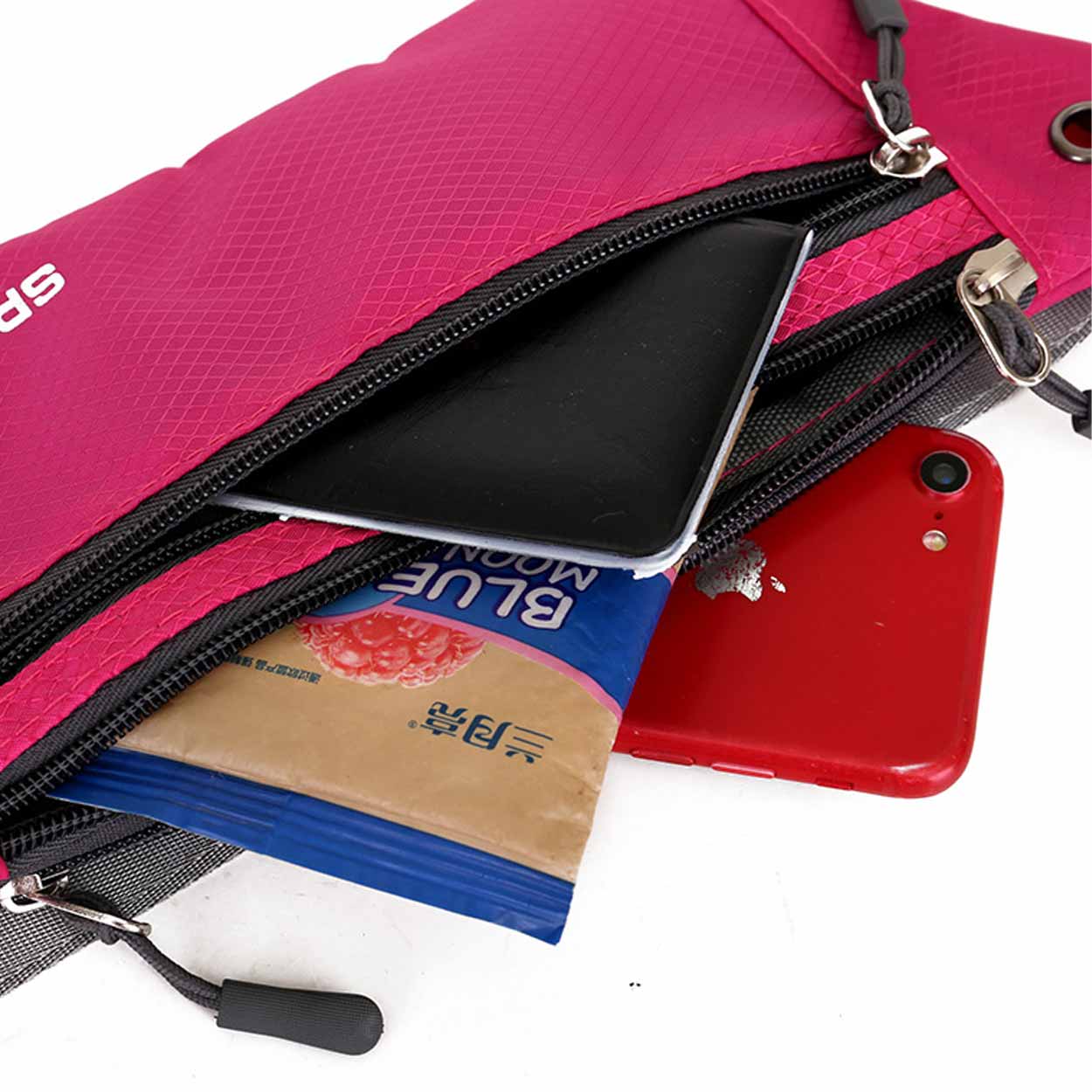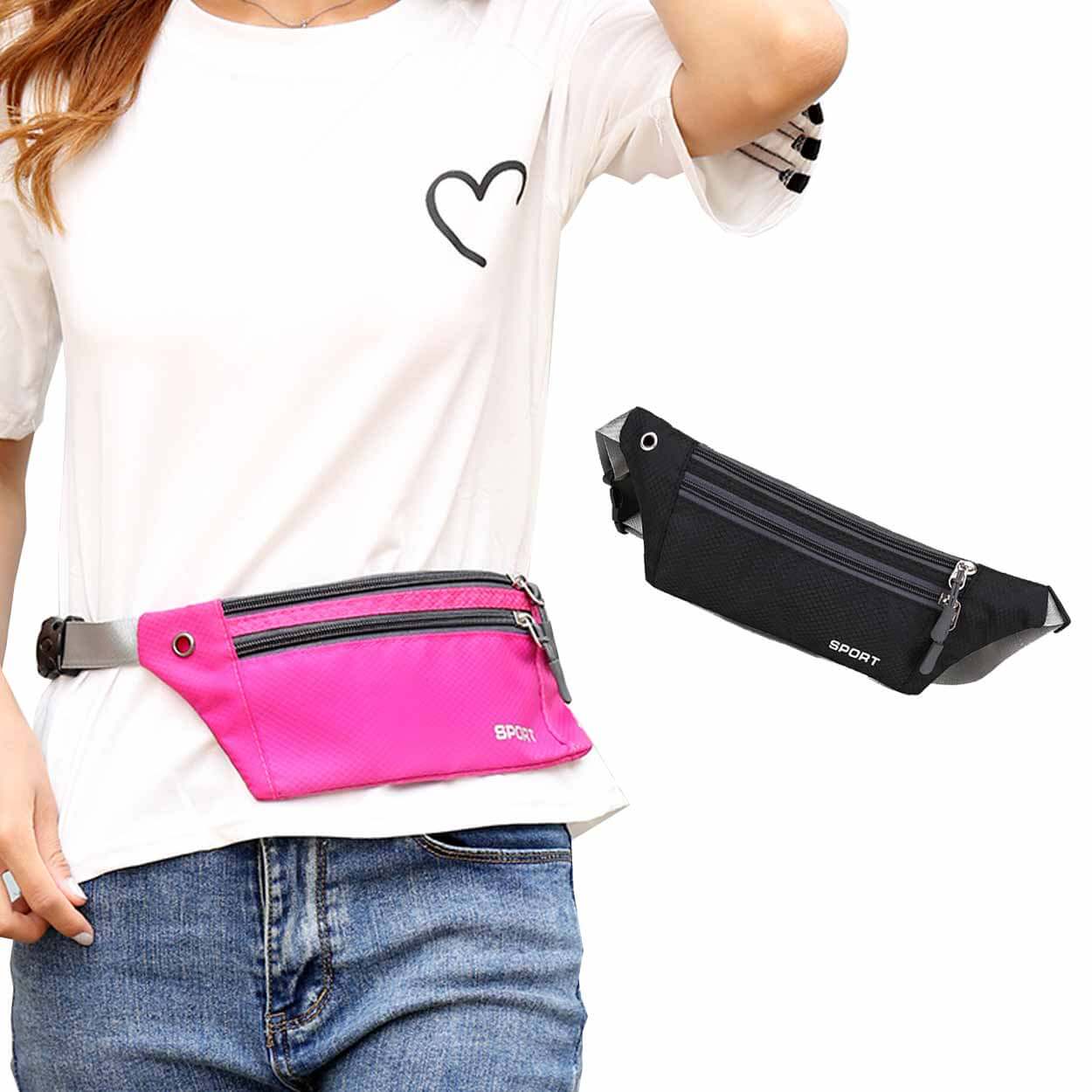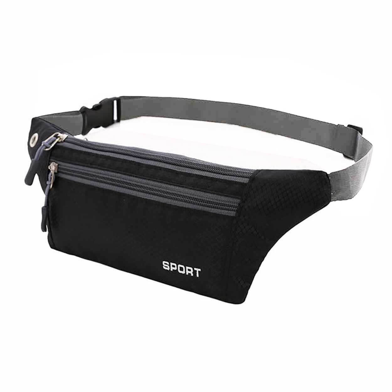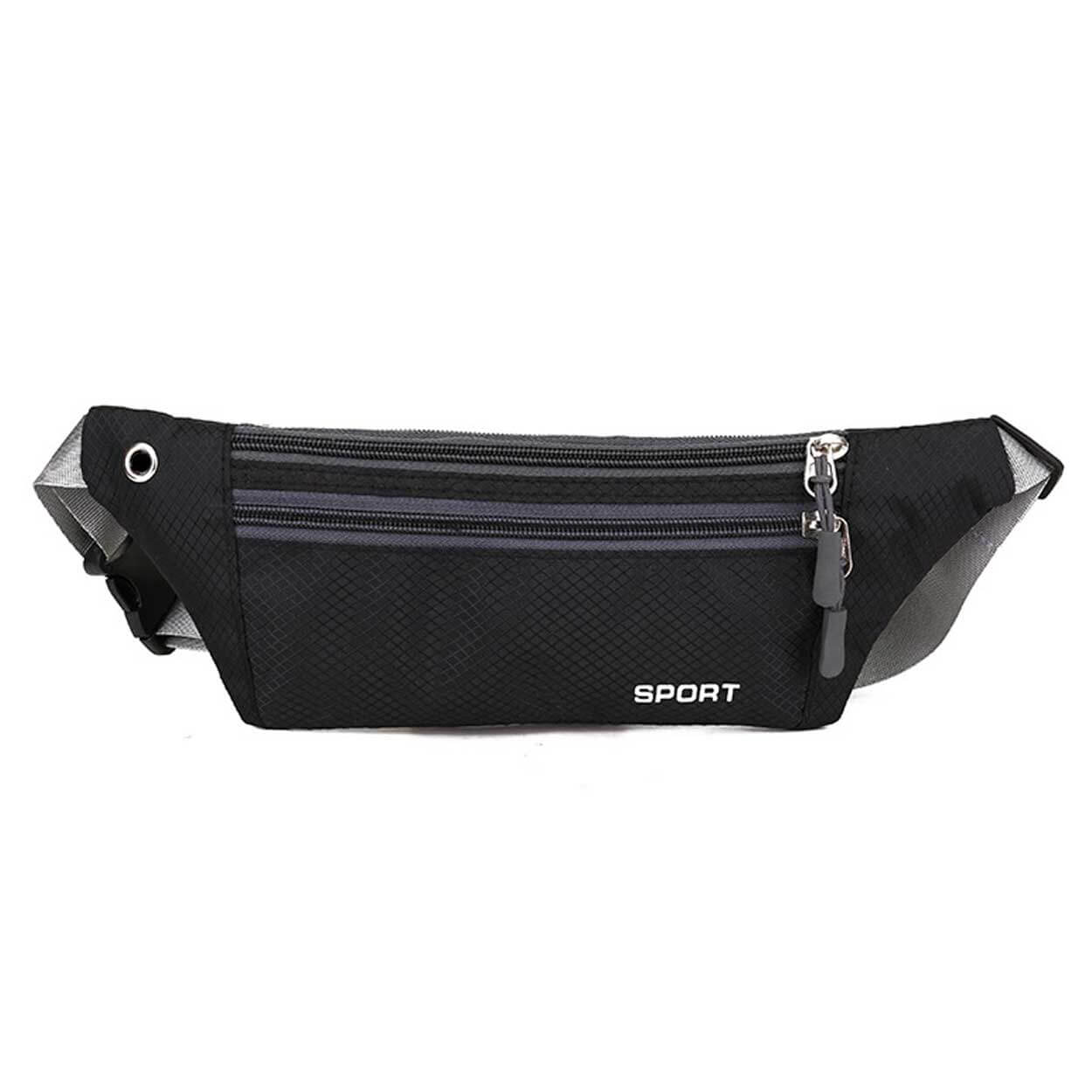 Midjeväska / magväska – löpning, resa, vardag – nylon, dubbla fack, hörlursuttag
