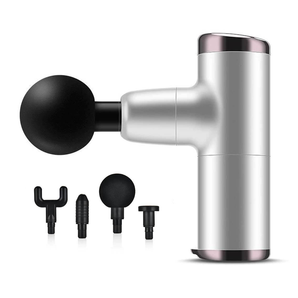 Mini massagepistol / massage gun – muskelmassage hemma – 4 hastigheter, 4 massagehuvuden, USB-C