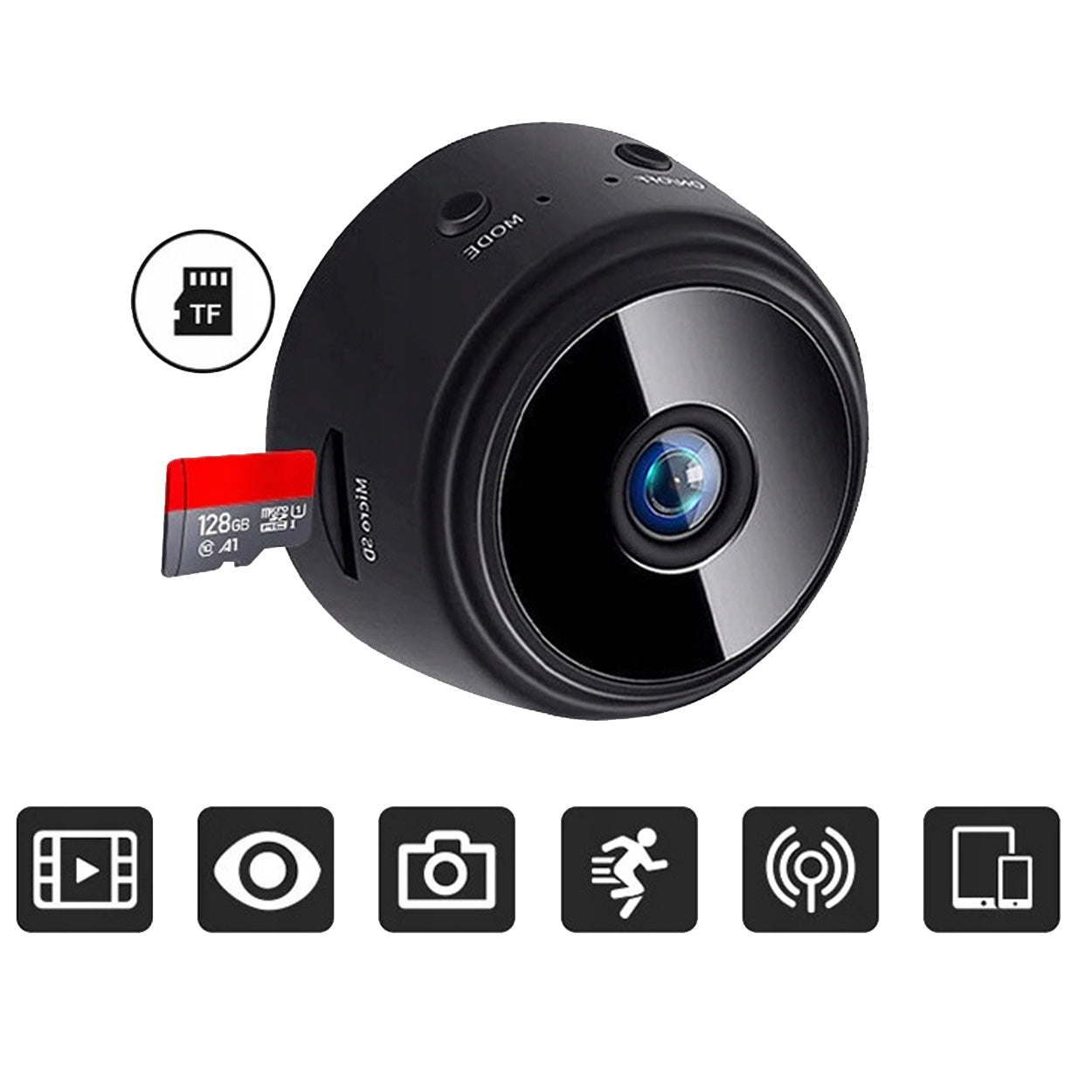Mini WiFi-övervakningskamera för diskret kontroll av hem, kontor eller förråd. Kameran ansluts trådlöst via WiFi och styrs i app för livevisning, ljud och inställningar. Full HD 1080p och 150° vidvinkel ger tydlig bild över större yta. Rörelsedetektion kan aktivera inspelning när aktivitet upptäcks, vilket gör lagringen mer effektiv. Inbyggd mikrofon och högtalare möjliggör tvåvägsljud. Inspelning kan sparas lokalt på microSD-kort. Magnetisk baksida och medföljande fäste förenklar placering.