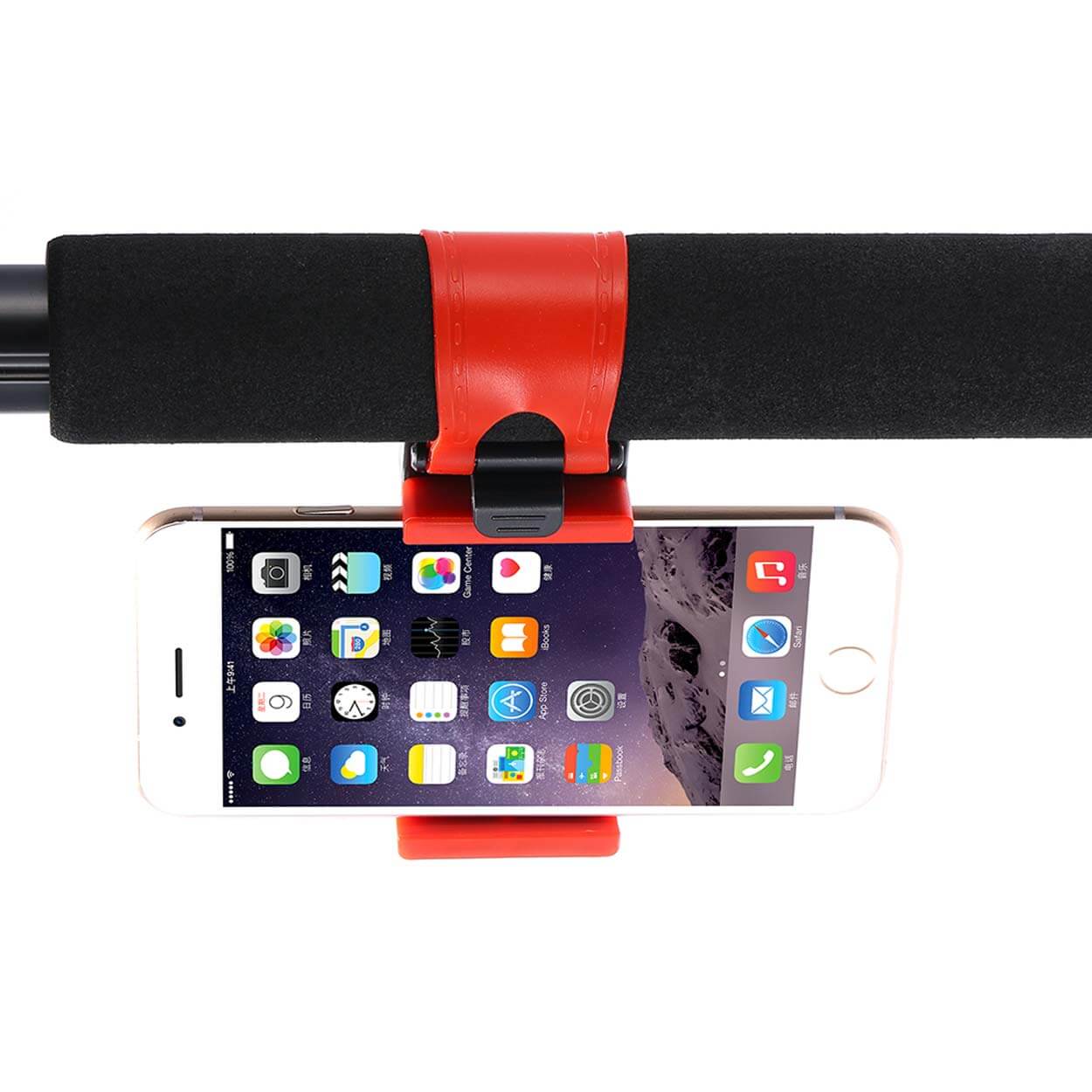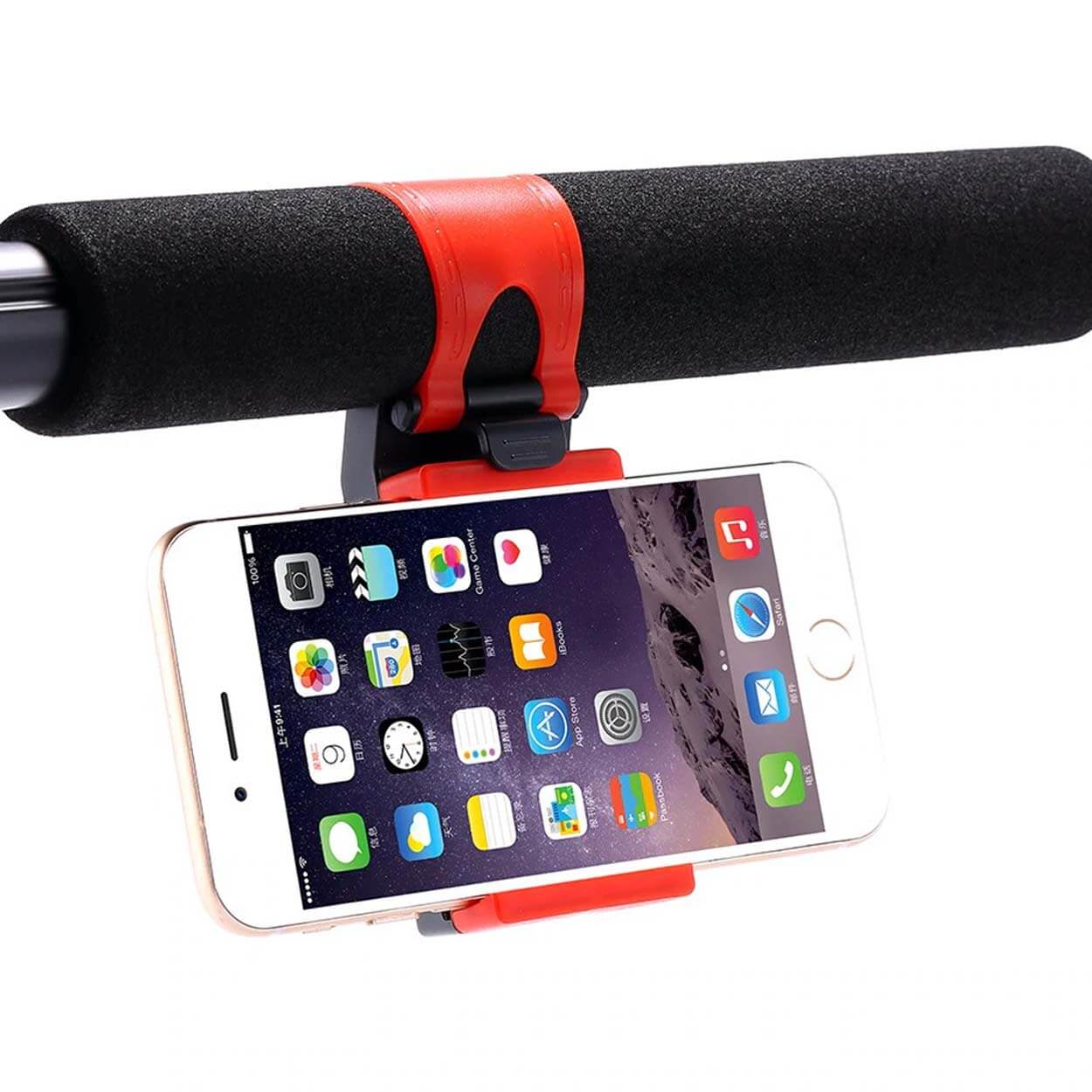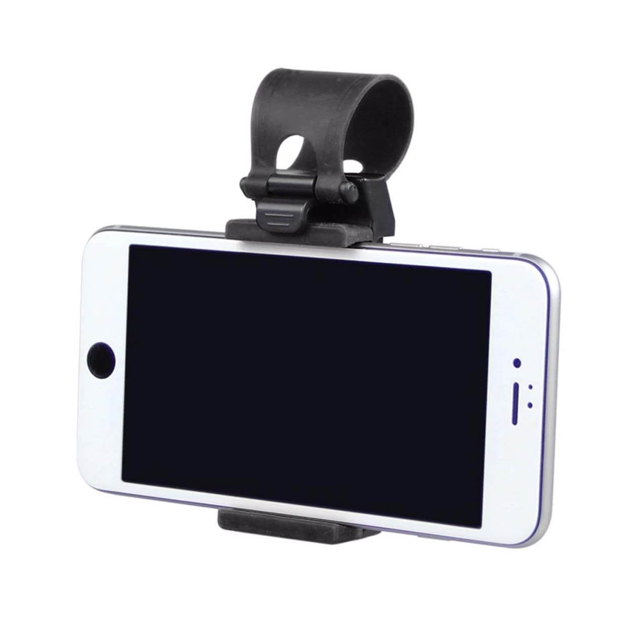Mobilhållare för montering på bilratt eller styre på cykel, moped och motorcykel. Hållaren har en justerbar fjäderklämma som gör det snabbt att sätta i och ta ur telefonen, samtidigt som greppet håller mobilen på plats vid normal körning. Passar telefoner i storleken 3,5–6,5 tum och fungerar med många vanliga modeller från Apple, Samsung och Huawei. Praktisk när du vill ha skärmen synlig för navigation eller samtal utan att hålla mobilen i handen.