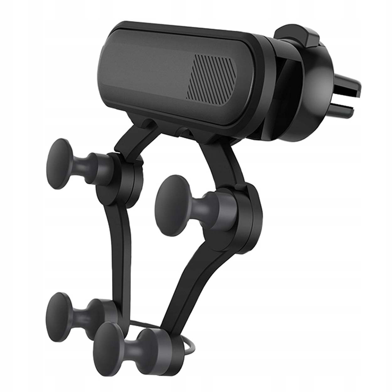 Mobilhållare med gravity-funktion för montering i bilens ventilationsgaller. Telefonen placeras i hållaren och armarna justerar sig automatiskt efter vikten, vilket ger ett stabilt grepp utan att du behöver spänna fast något manuellt. Konstruktionen är gjord för att kunna användas med en hand, så mobilen går snabbt att sätta i och ta ur vid stopp. Fästet sitter i luftventilen och hjälper till att hålla vindrutan fri från tillbehör. Kontaktpunkterna är skonsamma för att minska risken för repor på telefonen.
