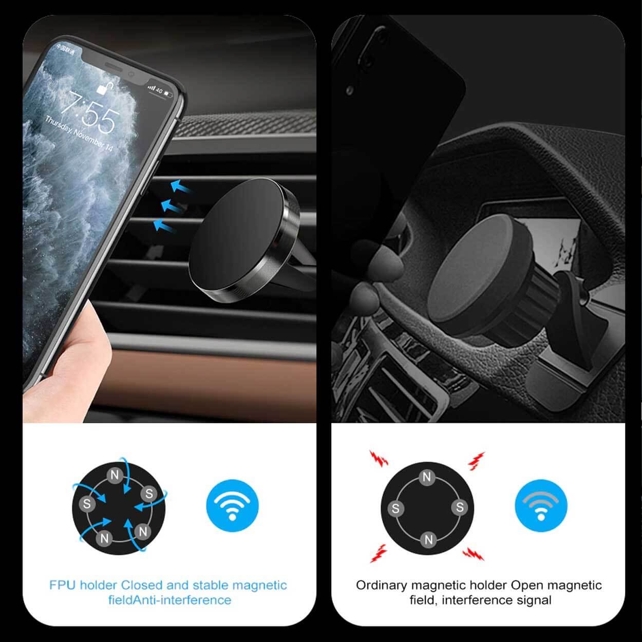 Tingelo Fordon Biltillbehör Hållare & förvaring Mobilhållare / bilhållare – montering i ventilationsgaller – magnetplatta ingår