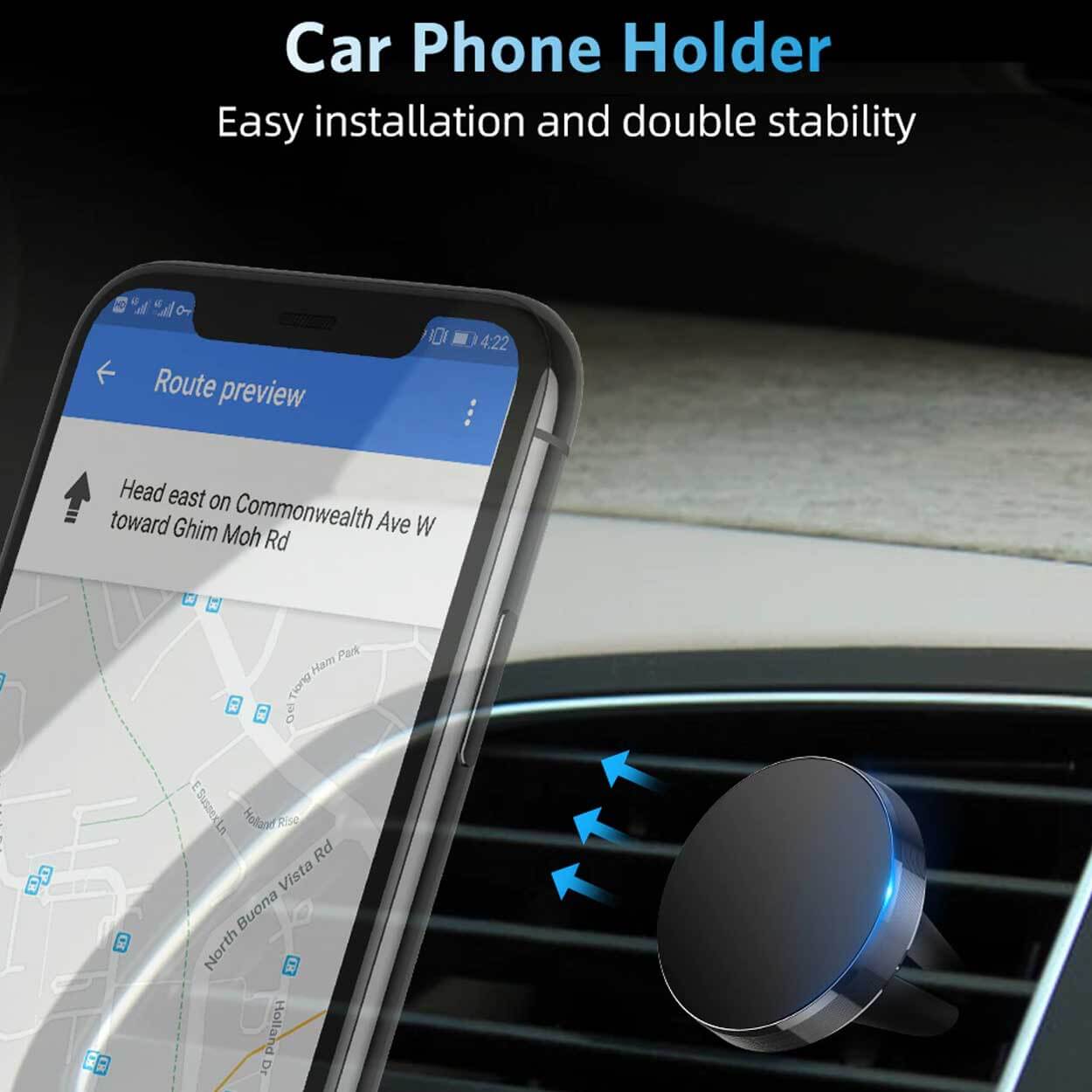 Magnetisk mobilhållare för bil som fästs direkt i ventilationsgallret och monteras på några sekunder. En magnetplatta ingår och kan fästas på baksidan av mobilen eller på ett mobilfodral för att skapa ett säkert magnetfäste. Hållaren fungerar även med föremål som redan är magnetiska. Konstruktionen ger snabb på- och avtagning när du behöver använda navigation eller handsfree, samtidigt som mobilen hålls stabilt på plats under körning. Passar de flesta bilar med fläktgaller och de flesta smartphones.