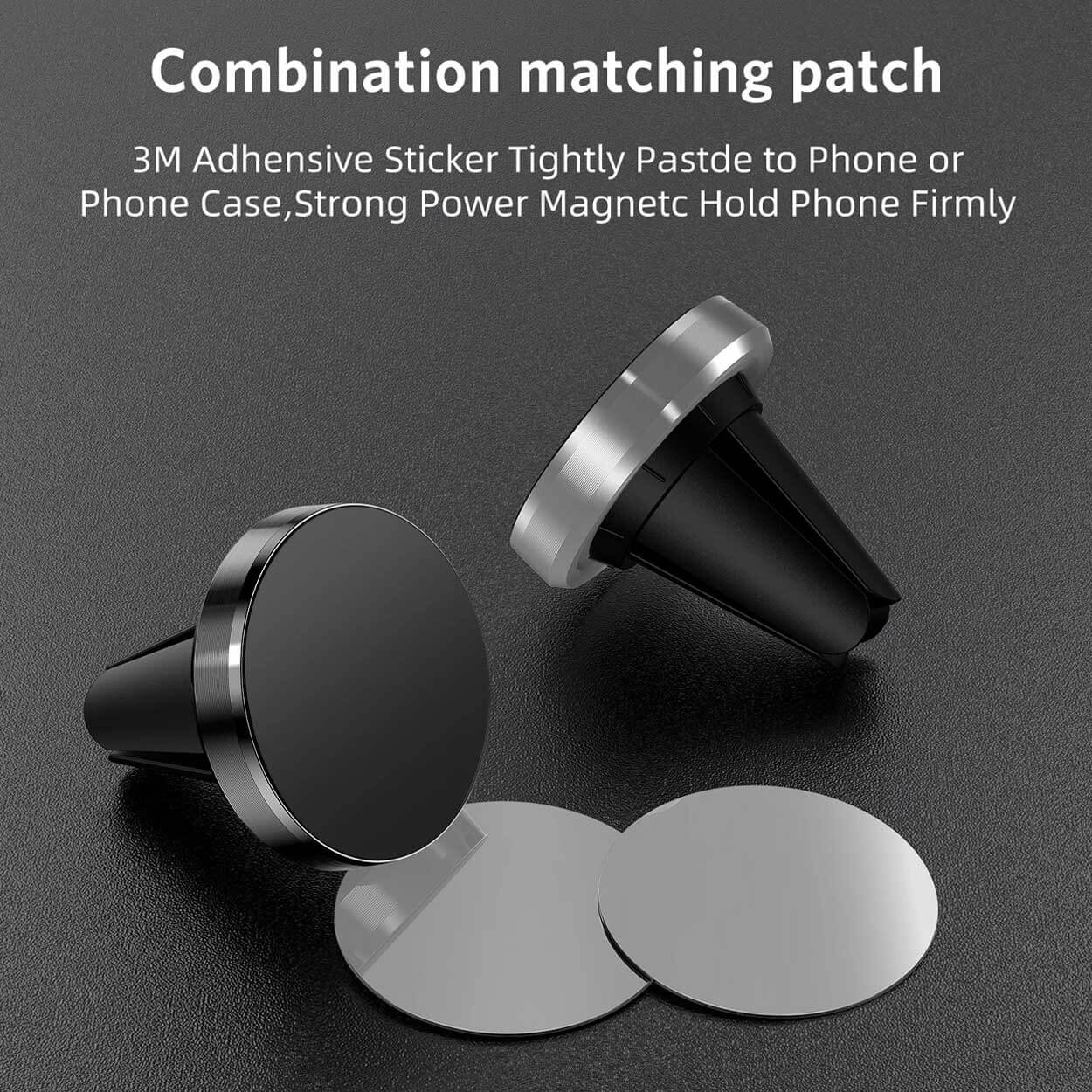 Magnetisk mobilhållare för bil som fästs direkt i ventilationsgallret. Monteringen går snabbt och kräver inga verktyg. En magnetplatta ingår och kan fästas på baksidan av mobilen eller på mobilfodralet för att skapa ett stabilt magnetfäste. Hållaren gör det enkelt att sätta dit och ta bort telefonen med en hand, vilket passar bra vid navigation och handsfree-användning. Passar de flesta smartphones och fungerar även med föremål som redan är magnetiska.