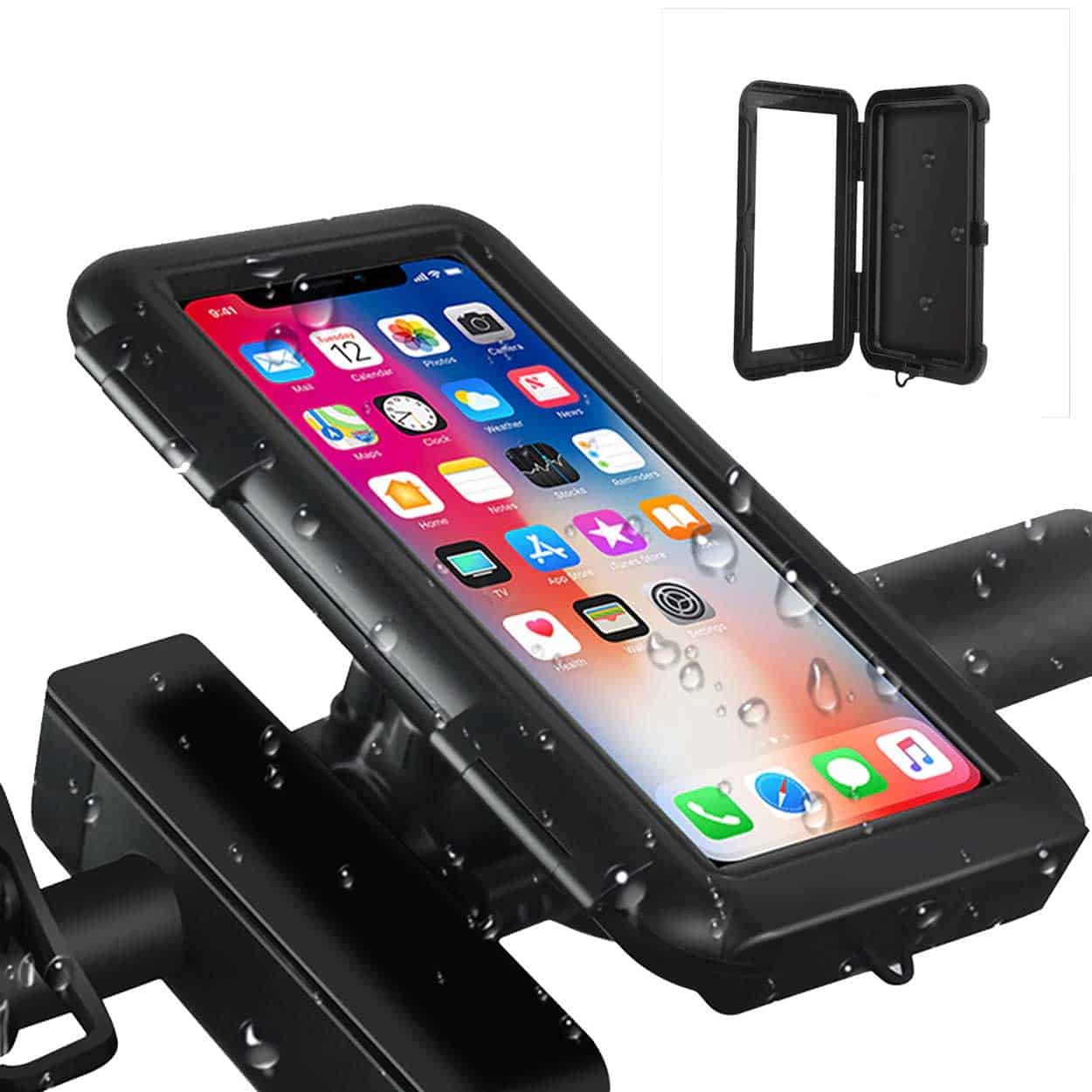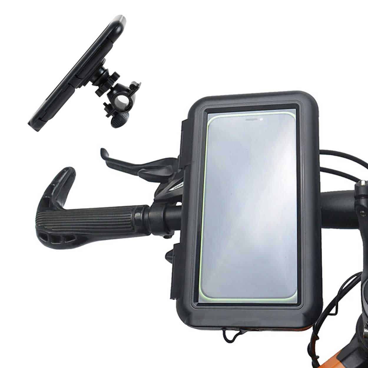 Väderskyddad mobilhållare för cykel som kombinerar styrefäste och skyddande fodral. Passar telefoner i storlek 4,7–6,5 tum och låter dig använda skärmen via touchfönstret, vilket gör navigation och GPS enklare under färd. Konstruktionen skyddar mot regn, snö, sand, lera och smuts vid normal användning, men är inte avsedd för full nedsänkning i vatten. Hållaren kan roteras 360° så att mobilen kan placeras både horisontellt och vertikalt. Öppning för laddkabel finns vid behov.