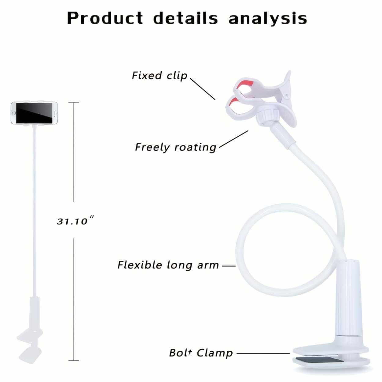 Mobilhållare / mobilställ – bordsklämma flexibel arm – 80 cm arm, klämma 13 cm