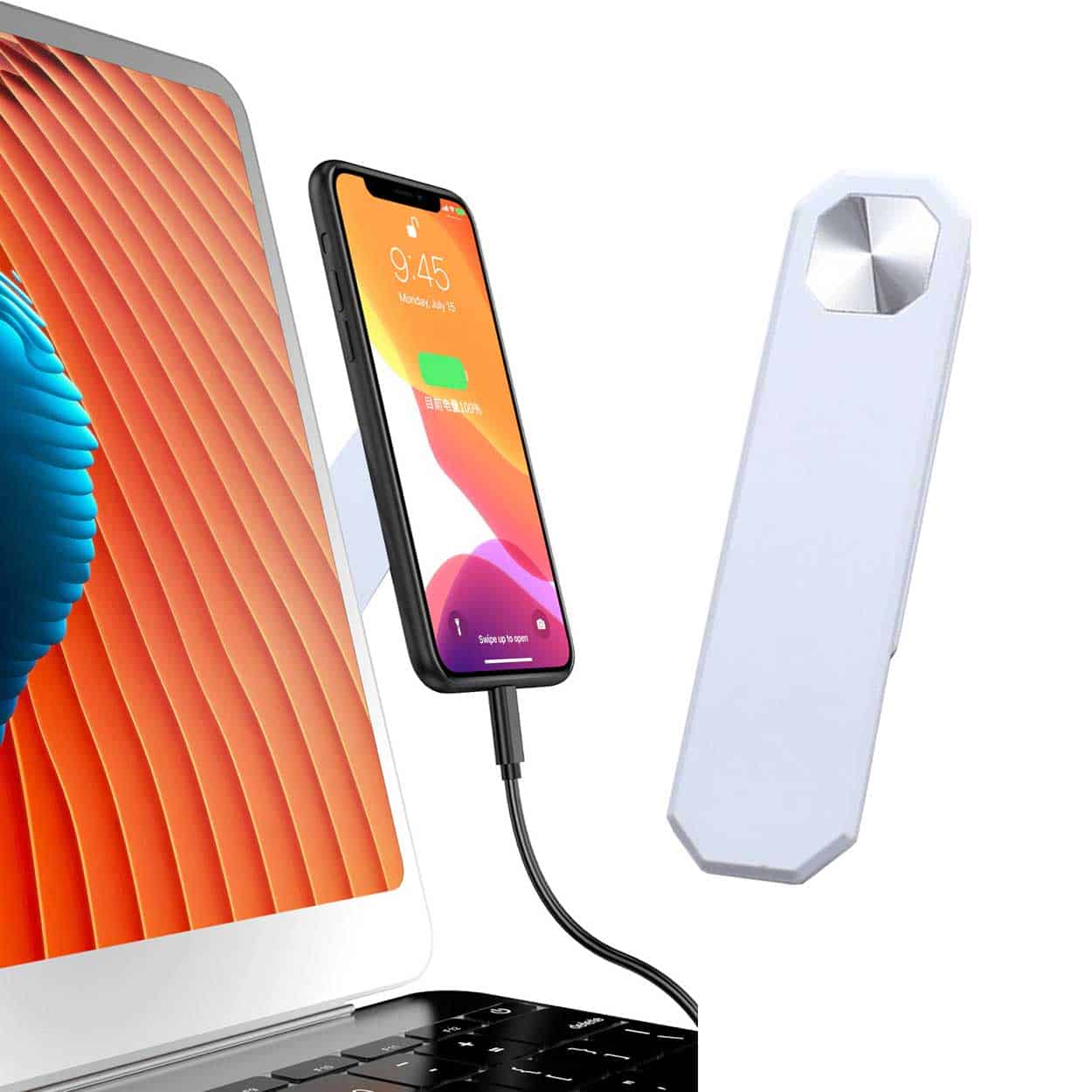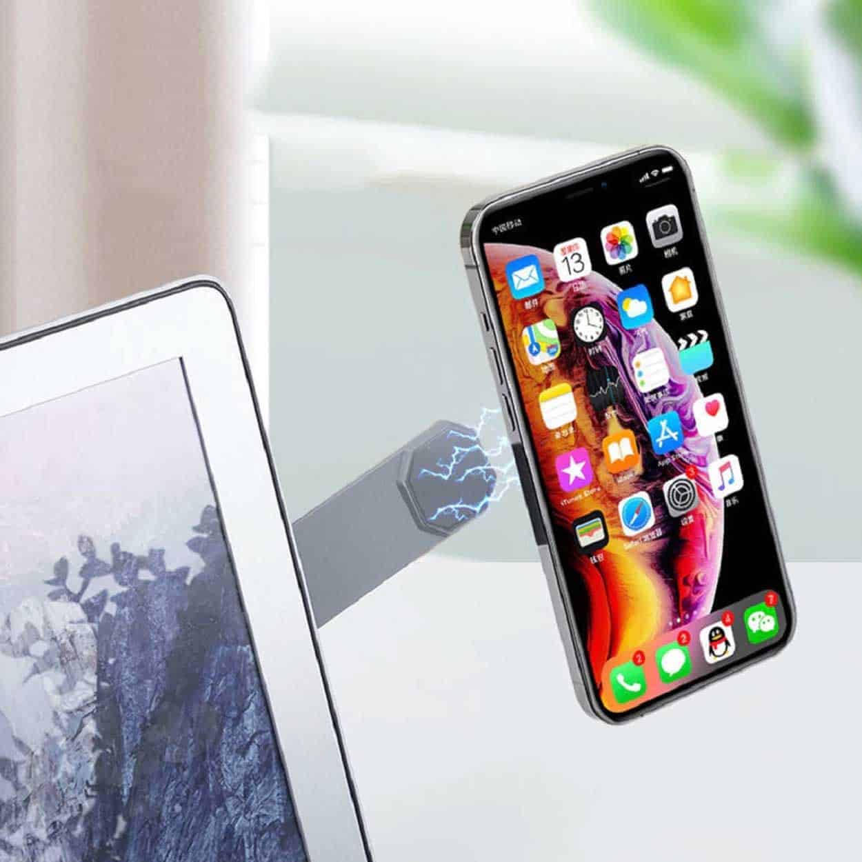Magnetisk mobilhållare som fästs på sidan eller toppen av en laptopskärm eller datorskärm. Mobilen placeras nära arbetsytan så att notiser, samtal och meddelanden blir enklare att följa utan att du behöver titta ner på skrivbordet. Hållaren kan även användas när mobilen fungerar som extra kontroll eller trigger vid arbete och spel. Magnetplatta för telefonen samt den magnetiska hållaren ingår, vilket gör monteringen snabb och smidig. Tillverkad i plast och utformad för att ta minimal plats.