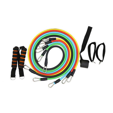 Motståndsband set för styrketräning, rörlighet och rehabilitering hemma eller på resa. Fem elastiska band kan användas var för sig eller kombineras för att anpassa belastningen och ge progressivt motstånd när banden sträcks ut. Handtag och benfästen ger stabilt grepp och fler övningsmöjligheter för över- och underkropp. Dörrstoppet gör det enkelt att förankra banden för dragövningar utan extra utrustning. Förvaringspåse ingår för smidig transport och ordning.