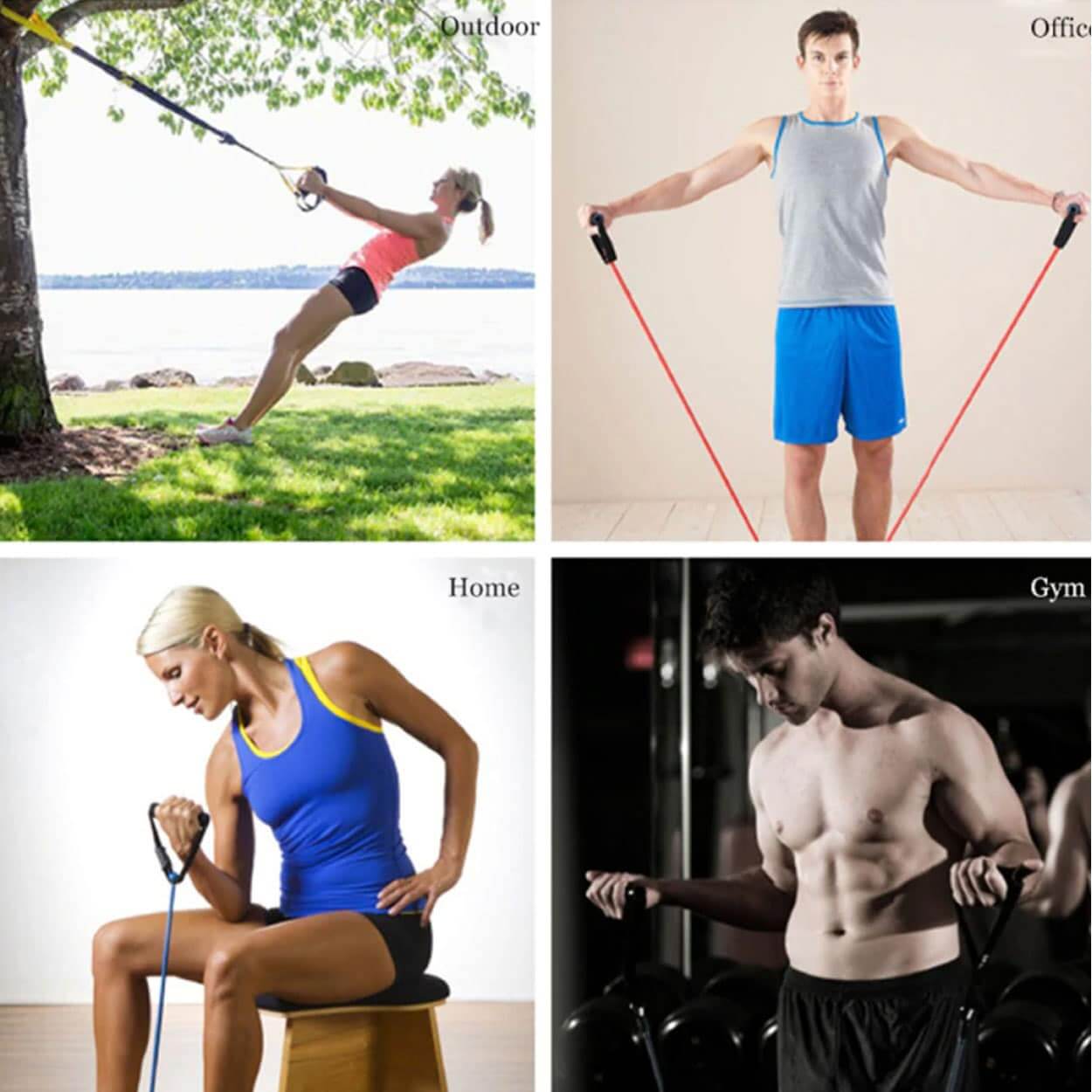 5 band upp till 45 kg Progressivt motstånd Handtag ingår Benfästen ingår Dörrstopp ingår