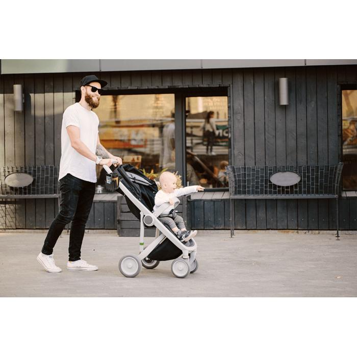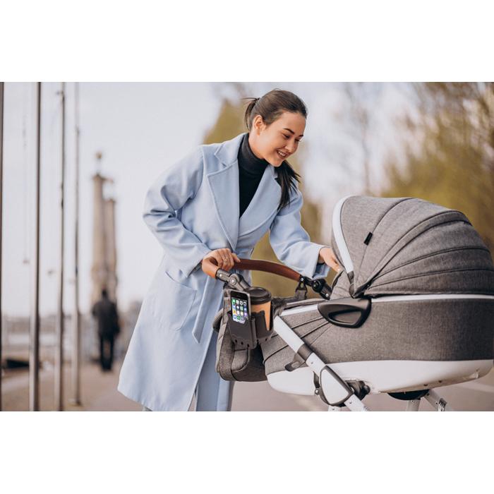 Flexibel mugg- och mobilhållare som fästs på barnvagnens handtag och gör det enklare att ha både dryck och telefon nära under promenaden. Konstruktionen är utformad för att hålla en mugg stadigt samtidigt som mobiltelefonen ligger säkert och lättåtkomligt. Monteringen sker utan verktyg, vilket gör att hållaren snabbt kan flyttas mellan olika vagnar vid behov. Passar de flesta smartphones och fungerar för vardagsbruk när du vill frigöra händerna och minska risken att tappa saker.