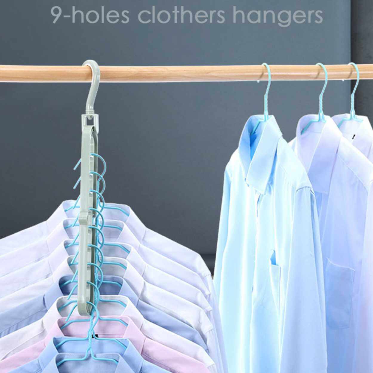 Multihängare / klädhängare – platsbesparande garderobsförvaring – PP-plast, 9 hål, 360° rotation