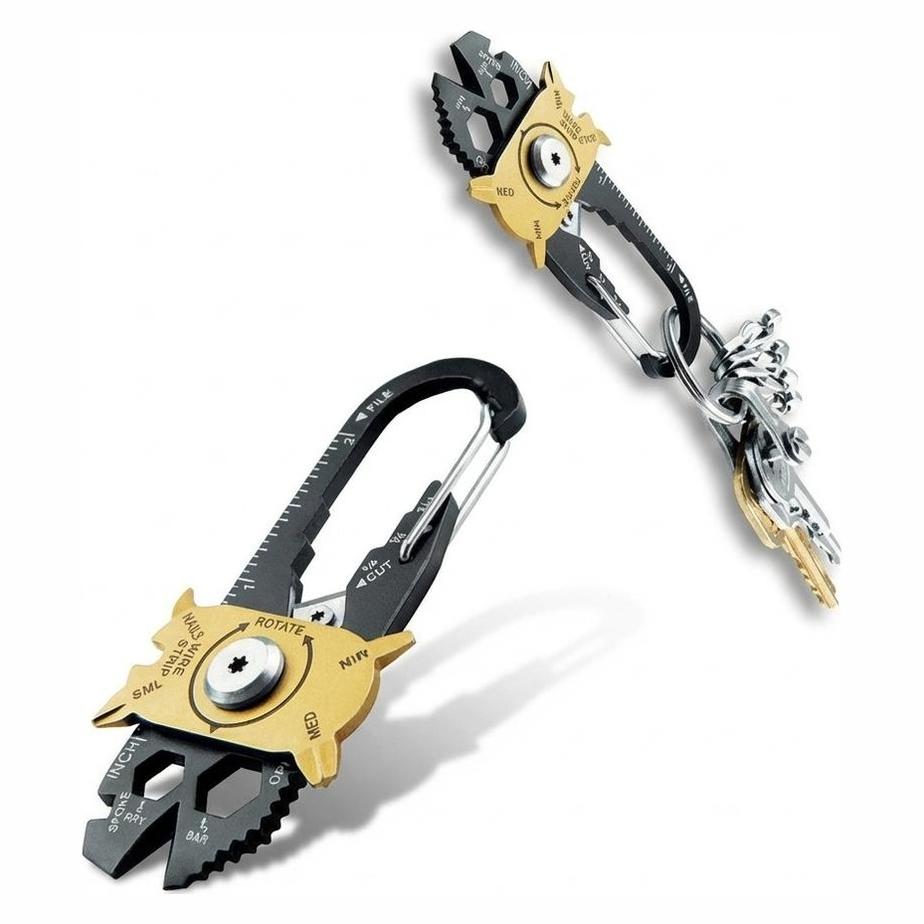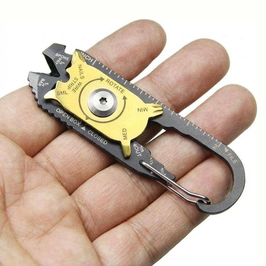 Roterande multiverktyg i kompakt format som samlar 20 vanliga funktioner för snabba justeringar och småreparationer. Den roterande väljaren gör det enkelt att byta verktygsprofil utan att leta efter separata delar. Passar för vardagsfix hemma, i bilen, på resa eller i friluftsutrustningen. Metallkonstruktionen i rostfritt stål ger korrosionsbeständighet och tålighet vid regelbunden användning. Lätt att bära i väska eller fästa i nyckelring för att ha grundverktyg nära till hands.