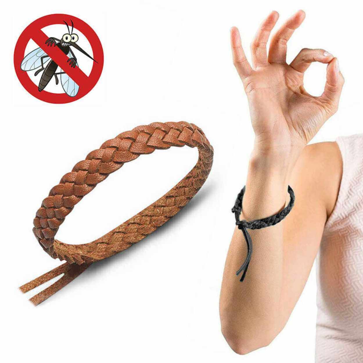 Myggarmband i flätat läder som hjälper till att hålla mygg borta vid utomhusaktiviteter. Armbandet är justerbart och kan bäras på handled eller fotled, vilket gör det smidigt för både barn och vuxna. Den myggavvisande effekten kommer från eteriska oljor av citronella, eucalyptus och mynta. Konstruktionen är vattentålig och behåller funktionen även om armbandet blir fuktigt. För längre användning kan armbandet förvaras tätt mellan tillfällena för att bevara doft och effekt.