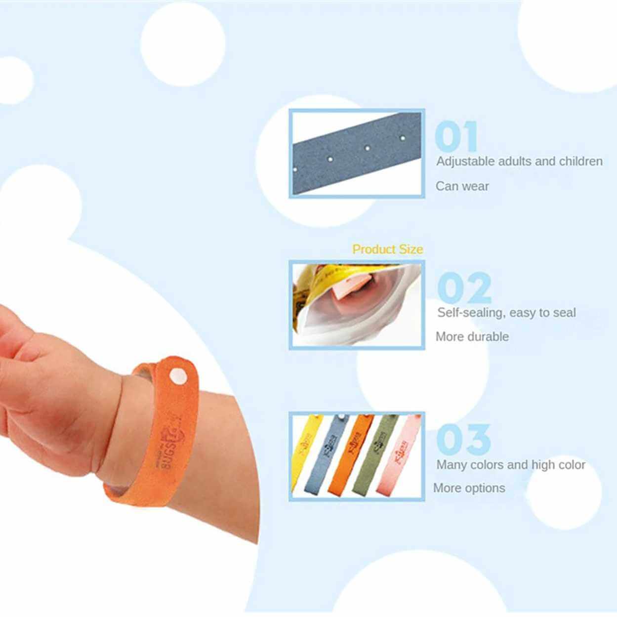 Växtbaserat myggskydd 240 timmars skydd Justerbar passform Förseglade armband För utomhusbruk