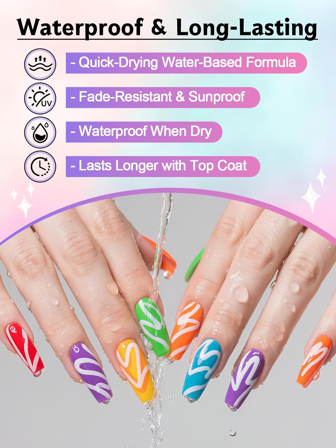 Tingelo Hälsa & Skönhet Skönhetsprodukter Nagelvård Nagelpennor / nail art pennor – detaljerad nageldekoration – vattenbaserat bläck, 0,5 mm spets, 3 ml