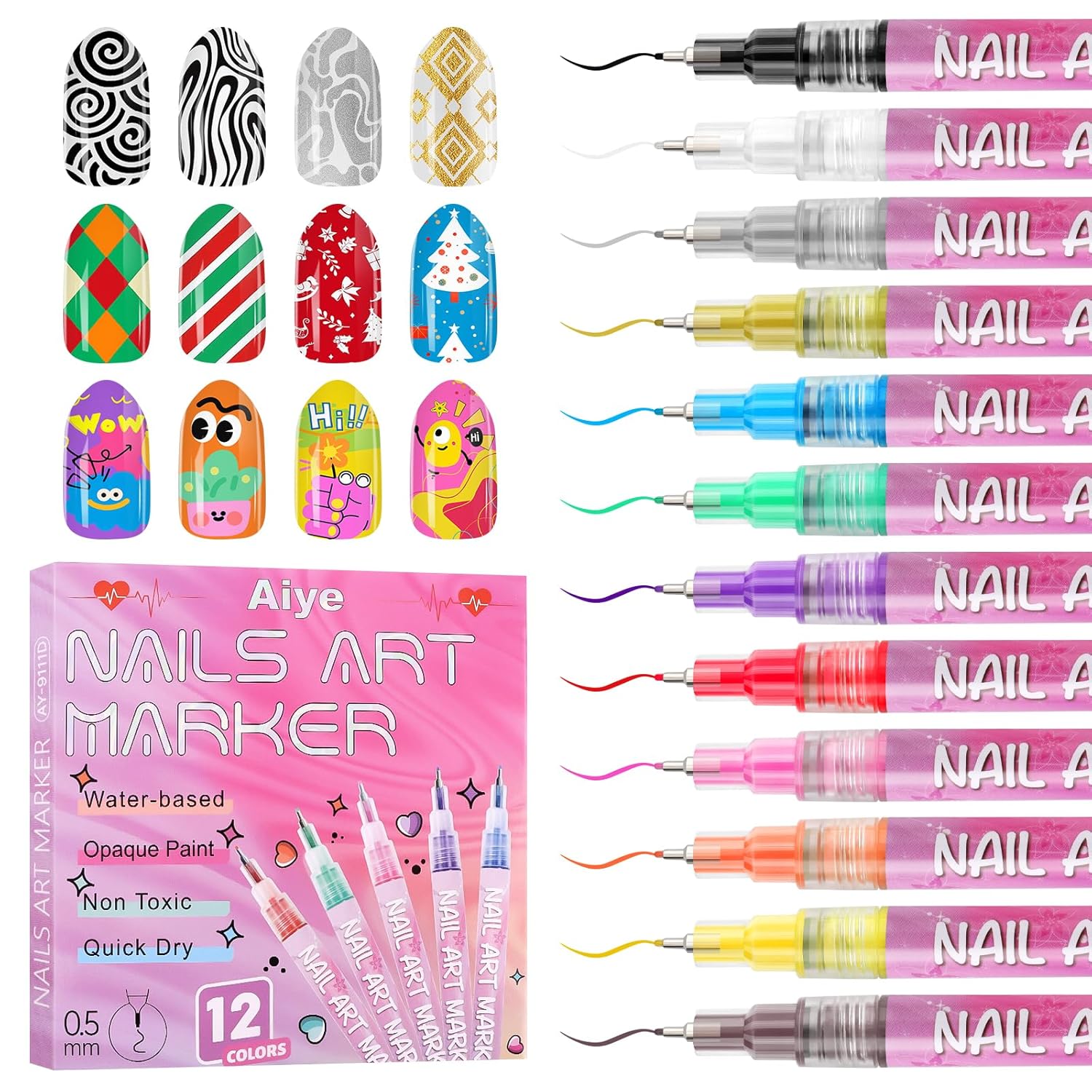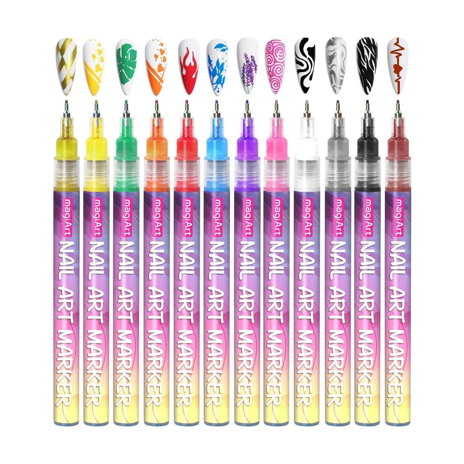 12 nagelpennor 0,5 mm spets Vattenbaserat bläck Dubbelsidig penna 3 ml per penna