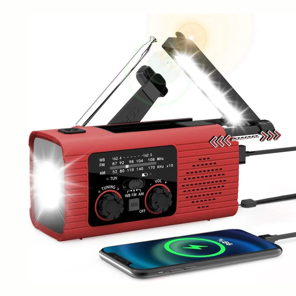 Nödradio / krisradio / vevradio – radio, ljus, nödladdning – 2000 mAh, AM/FM/WB, USB