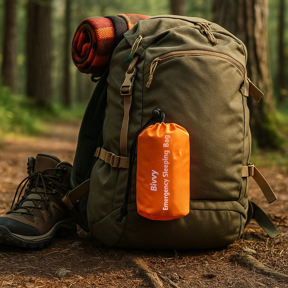 Bivvy-sovsäcken är avsedd som ett snabbt skydd när ordinarie sovsystem saknas eller inte räcker. Den reflekterande insidan hjälper till att bevara värme, men fungerar bäst när den kombineras med vindskyddad plats och isolering mot markkyla, exempelvis liggunderlag eller granris. Den täta filmen kan även användas som tillfälligt regnskydd över utrustning eller som enkel barriär mot vind. Förvaringspåsen gör det lätt att hålla varje sovsäck separat i första hjälpen-kit, bil, båt eller ryggsäck.