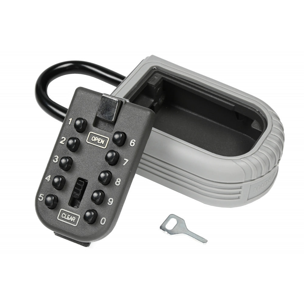 Nyckelgömma med kombinationslås som även fungerar som hänglås, framtagen för att dela nyckelåtkomst utan att lämna ut kopior. Egen kod ställs in för kontrollerad åtkomst när flera personer behöver kunna öppna, exempelvis vid hemvård, nödtjänster eller till fritidshus och garage. Konstruktionen är mekanisk och kräver inga batterier. Höljet i zinklegering ger en tålig och väderbeständig lösning för nyckelförvaring där nycklar ska vara både skyddade och lättillgängliga vid behov.