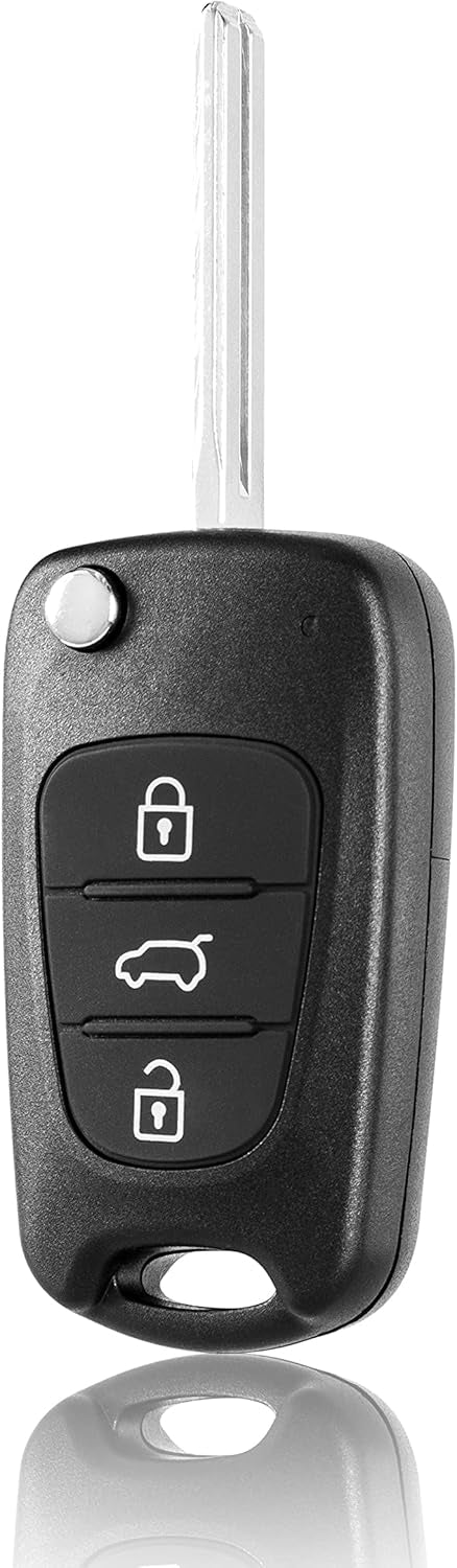 Nyckelskal för Hyundai och Kia som ersätter ett slitet eller skadat originalskal utan att du behöver köpa en ny bilnyckel. Innehållet från din befintliga nyckel flyttas över till det nya skalet, så att funktion och passform behålls. Skalet har tre knappar för låsning, upplåsning och öppning av bagageutrymmet. Fällmekanismen gör nyckeln smidigare i fickan och hjälper till att skydda knapparna mot slitage. Kontrollera att form och knappplacering på din nyckel matchar innan byte.