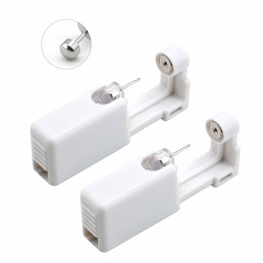 Öronhåltagningskit för hemmabruk som gör det enkelt att ta hål i örat med ett kontrollerat tryck. Verktyget positioneras där hålet ska sitta och vid aktivering förs läkesmycket igenom örat. Låset fäster automatiskt på baksidan direkt efter håltagningen, vilket minskar moment och hantering. Varje verktyg är sterilt och avsett för engångsbruk för en mer hygienisk process. Setet innehåller två kompletta piercingverktyg och läkesmycken i 4 mm diameter.