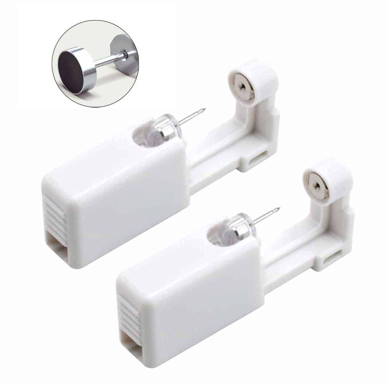 Öronhåltagningskit för dig som vill ta hål i örat hemma på ett smidigt sätt. Verktyget positioneras mot örsnibben och aktiveras med ett lätt tryck så att läkesmycket förs igenom. Låset fäster automatiskt på baksidan, vilket gör processen snabb och minskar behovet av extra hantering. Kitet innehåller två sterila piercingverktyg för engångsbruk. Medföljande läkesmycke har en fake plug-form och 5 mm diameter, vilket ger ett tydligt uttryck direkt efter håltagning.
