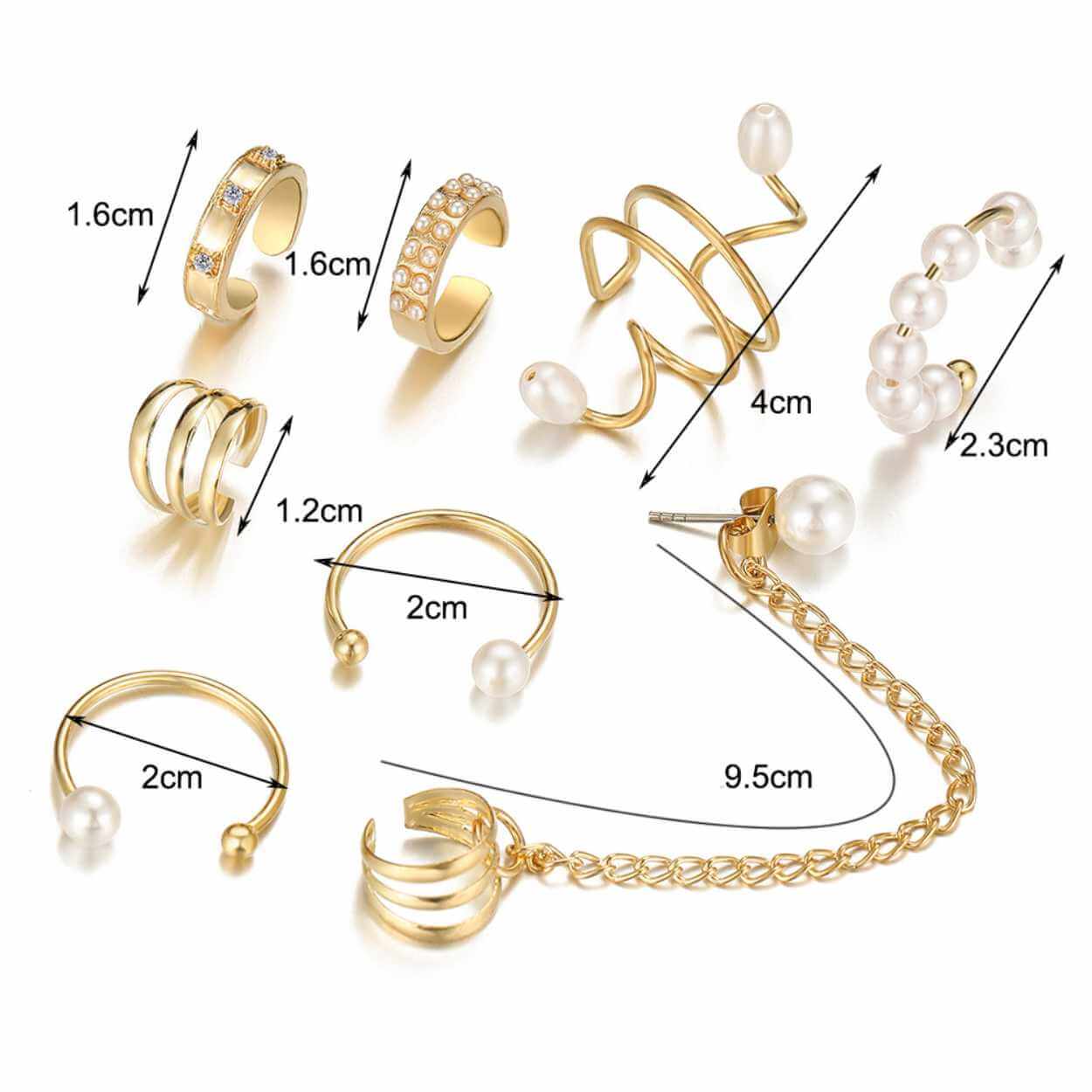Öronpiercing set med flera piercingsmycken och örhängen för dam. Setet är gjort för att kunna kombineras fritt mellan olika hål i örat och ger en sammanhållen look utan att du behöver leta matchande delar separat. Pärldetaljerna skapar en tydlig accent och gör att smyckena fungerar både till vardags och vid mer uppklädda tillfällen. Passar dig som vill bygga en egen öronstyling med flera små smycken som kan varieras efter behov.
