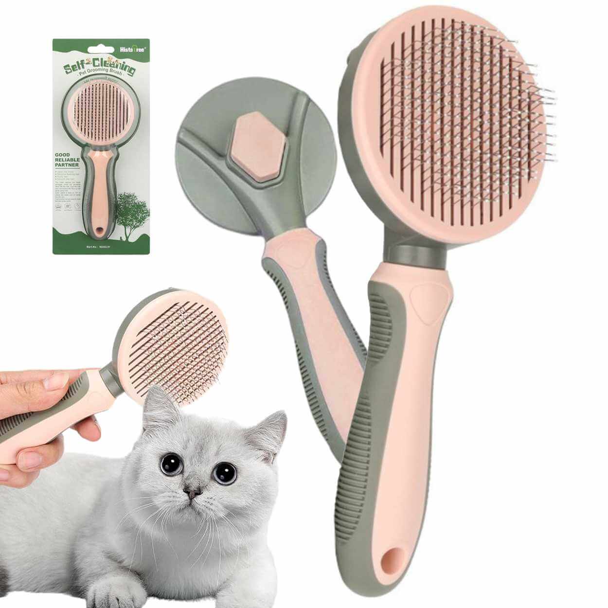 Självrengörande pälsborste för hund och katt som hjälper till att reda ut trassel och ta bort lös päls och smuts. Rostfria stålnålar kammar igenom pälsen och når även underullen för mer effektiv borstning. Rengöringen går snabbt: tryck på knappen så släpper den uppsamlade pälsen från nålarna. Handtaget i plast och TPR ger ett stabilt grepp och gör borsten enkel att använda vid regelbunden pälsvård hemma.