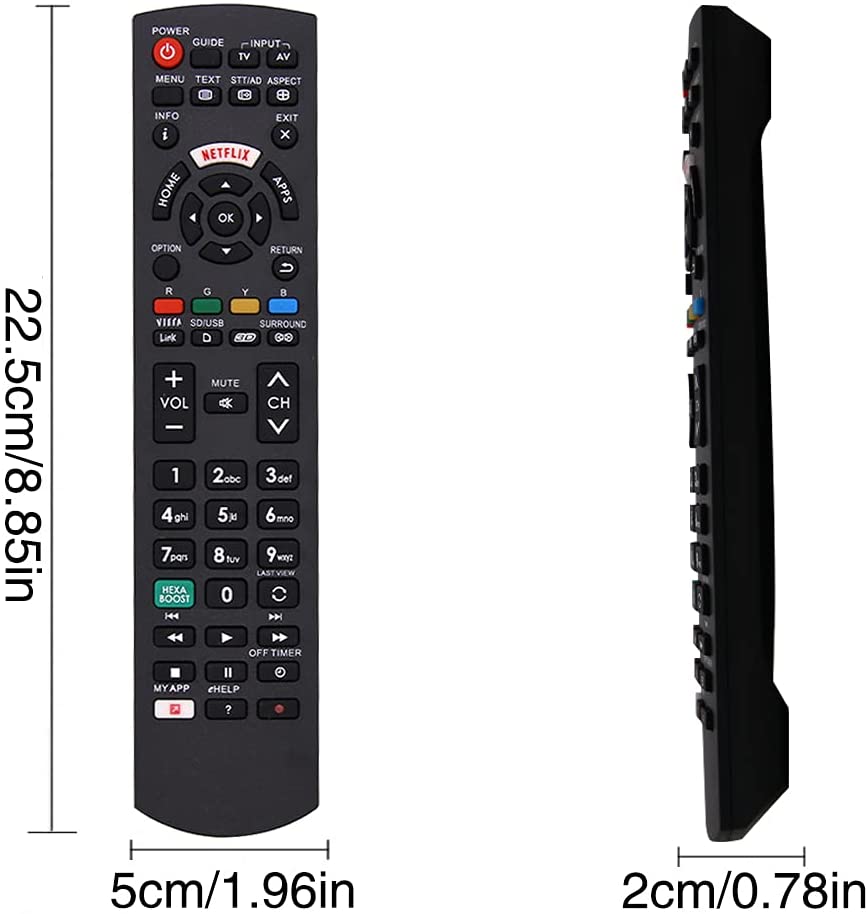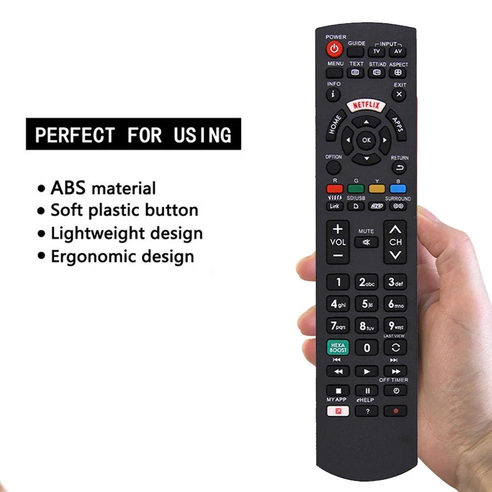 Universal ersättningsfjärrkontroll för Panasonic LCD- och Smart-TV som ersätter N2QAYB000047. Fjärren fungerar direkt utan programmering: sätt i 2x AAA-batterier och börja styra TV:n. IR-teknik ger stabil signal och snabb respons med räckvidd cirka 8–10 meter. Konstruktionen i slitstark ABS-plast ger ett grepp som passar daglig användning och gör den praktisk som ersättare eller extra fjärr i hemmet.