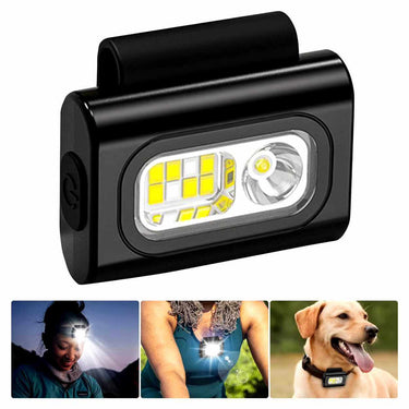 Pannlampa / klämlampa – löpning, promenad – IP55, USB-C, 6 ljuslägen