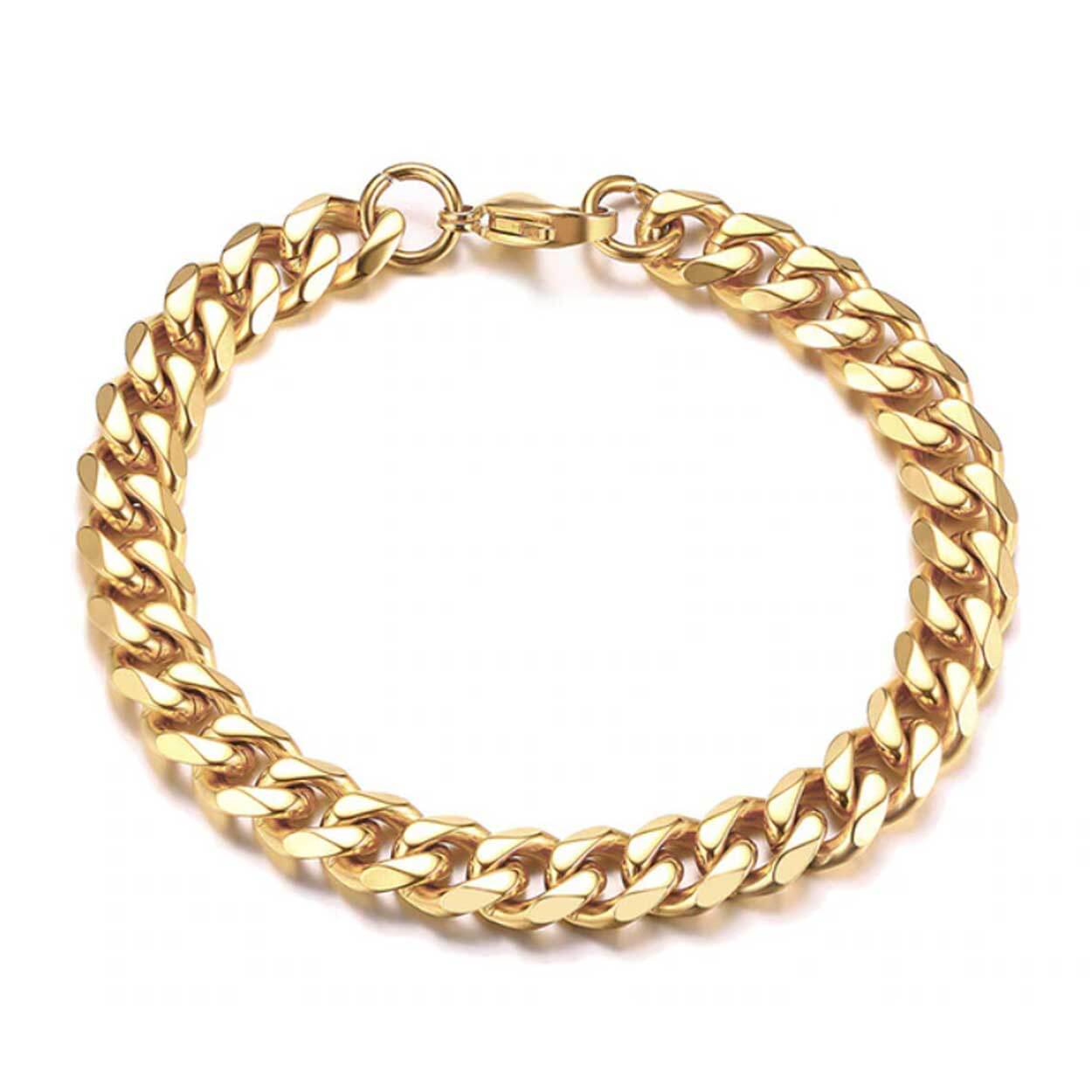 Pansarlänk / kedjearmband – armband herr – guldpläterat stål, 22 cm