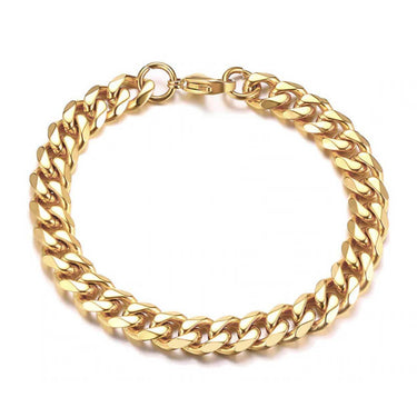 Pansarlänkarmband i guldpläterat stål som ger ett tydligt, klassiskt kedjeuttryck. Bredden på 9 mm ger en stabil känsla och gör armbandet lätt att bära både till vardags och vid mer uppklädda tillfällen. Längden är 22 cm och passar många handleder utan att sitta för tight. Stål som basmaterial ger bra tålighet mot slitage, samtidigt som den guldpläterade ytan ger ett mer exklusivt intryck. Vikten ligger runt 23–25 g för en balanserad tyngd på handleden.