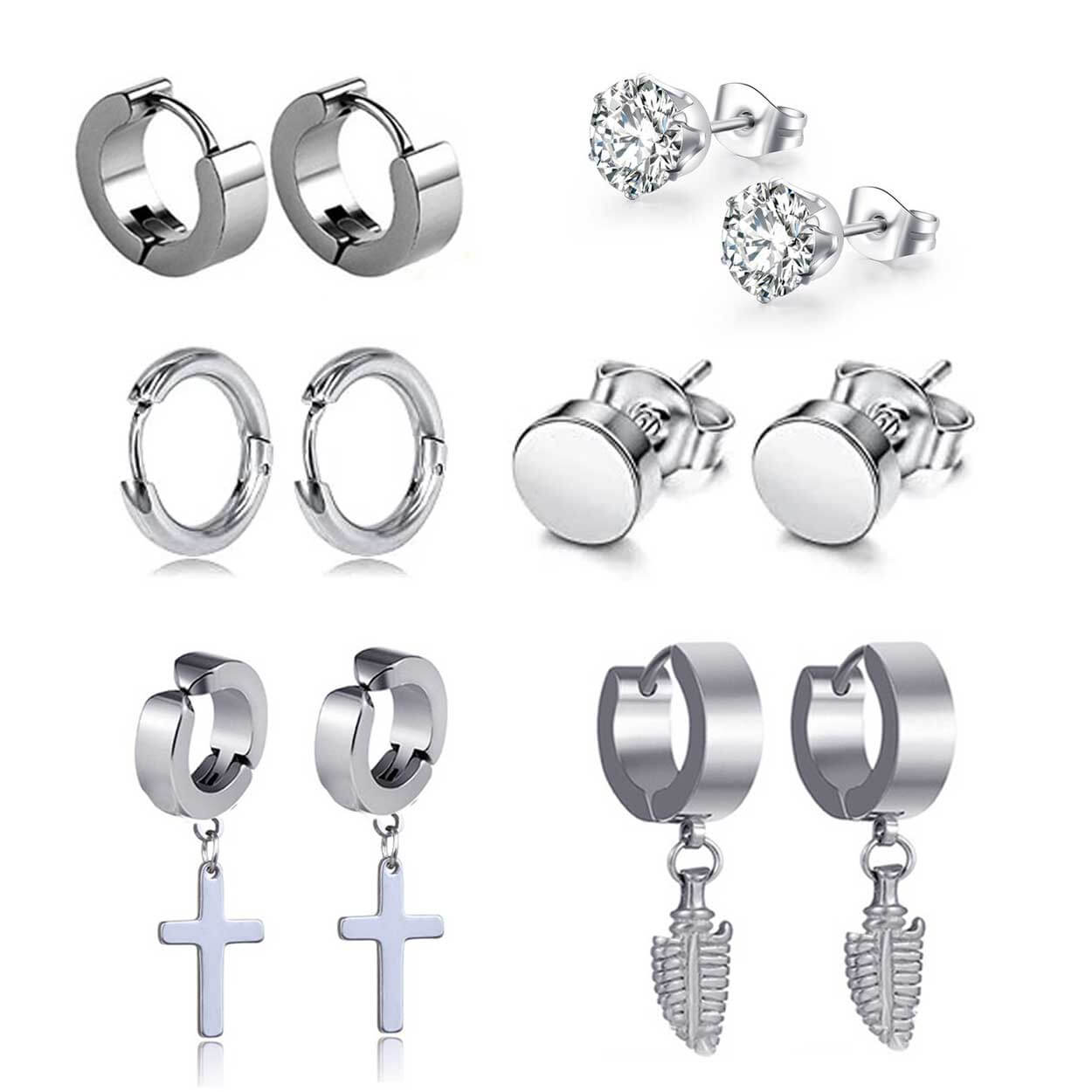 Piercingörhängen / örhängen set – mixade modeller – 316L kirurgiskt stål, 6 par
