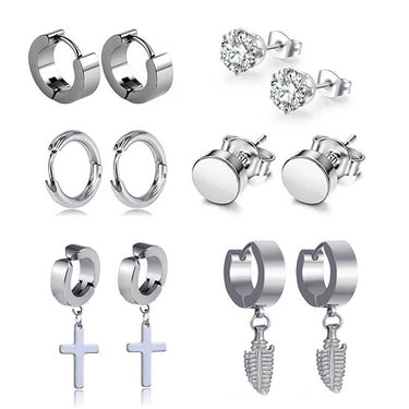 Piercingörhängen set med sex par i mixade modeller för öronhål och piercing. Sortimentet innehåller ringar i olika tjocklek, studs med kristall, plugs samt ringar med dekorativa detaljer. Tillverkat i 316L kirurgiskt stål som är slitstarkt och lämpar sig för regelbunden användning. Flera storlekar ingår, vilket gör det enkelt att hitta en passform som fungerar för olika placeringar i örat. Ett praktiskt set när du vill kunna variera uttryck utan att byta material eller grundtyp.