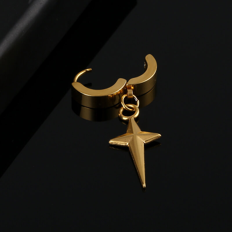Piercingring som även fungerar som örhänge, utformad som en tjock ring med stjärndetalj. Tillverkad i 316L rostfritt stål för en tålig och slitstark känsla vid daglig användning. Den kompakta vikten gör den bekväm att bära under längre tid. Passar för dig som vill ha ett tydligt ringformat smycke med en markerad detalj, utan att kompromissa med materialvalet.