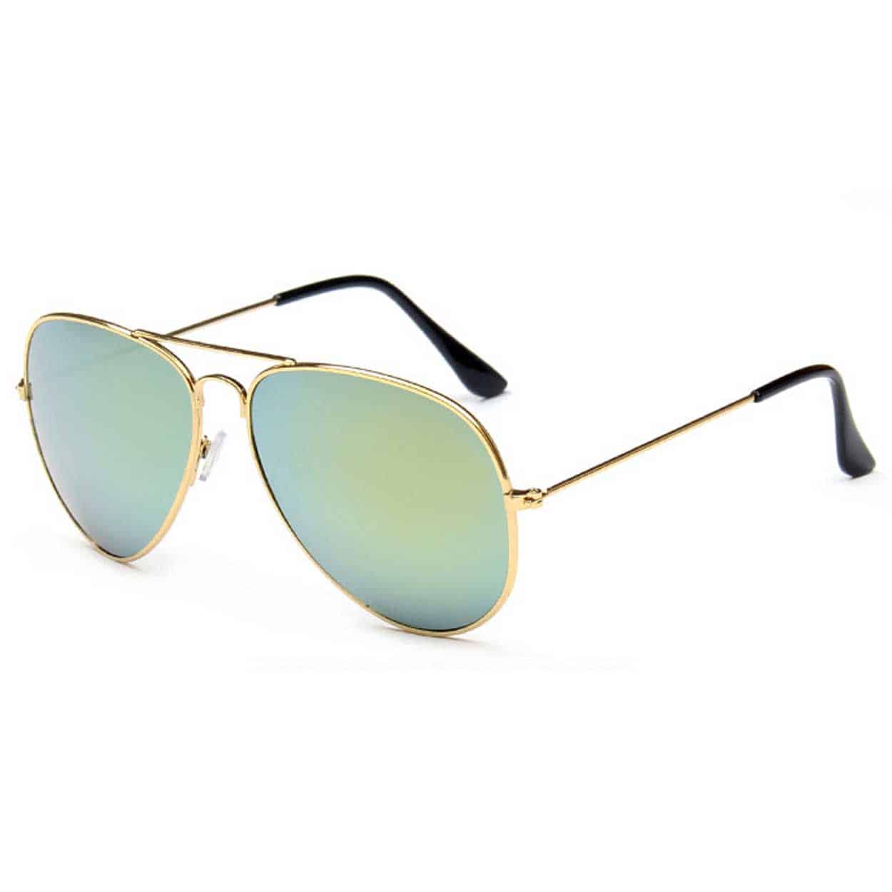 Pilotformade solglasögon för herr med metallbåge och spegelglas som hjälper till att minska bländning i starkt ljus. Resinlinserna har UV400-skydd som filtrerar både UVA- och UVB-strålning, vilket gör dem lämpliga för vardagsbruk i soliga miljöer. Den stora linsytan ger bra täckning och ett öppet synfält. Passar för promenader, bilkörning och andra utomhusaktiviteter där ögonskydd och komfort är viktigt.